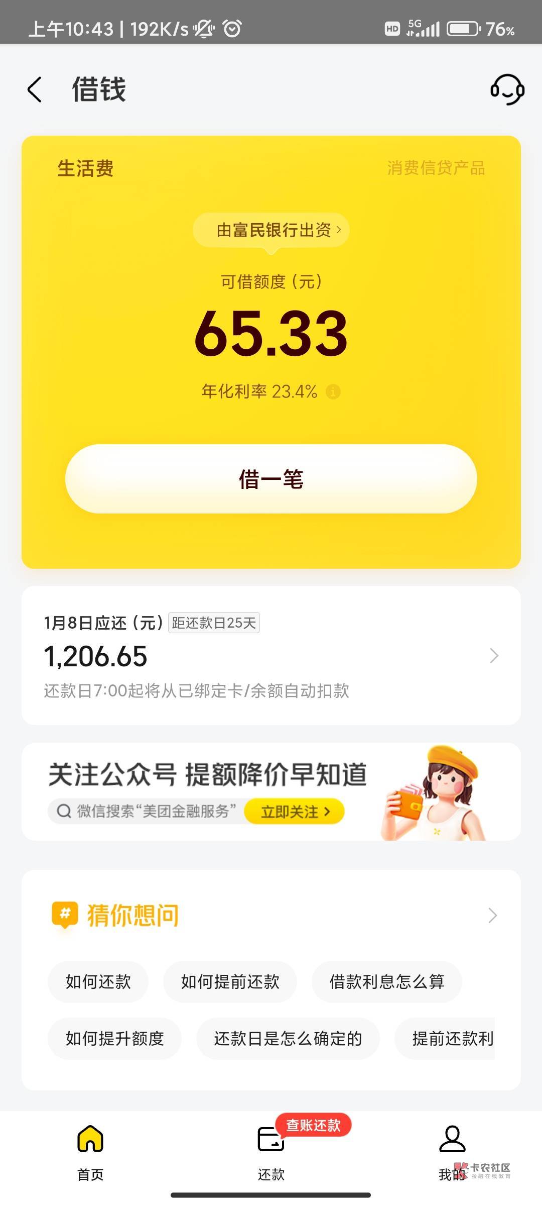 我的半年了,额度不给借,还一直给我提升额度,从一万提到一万七