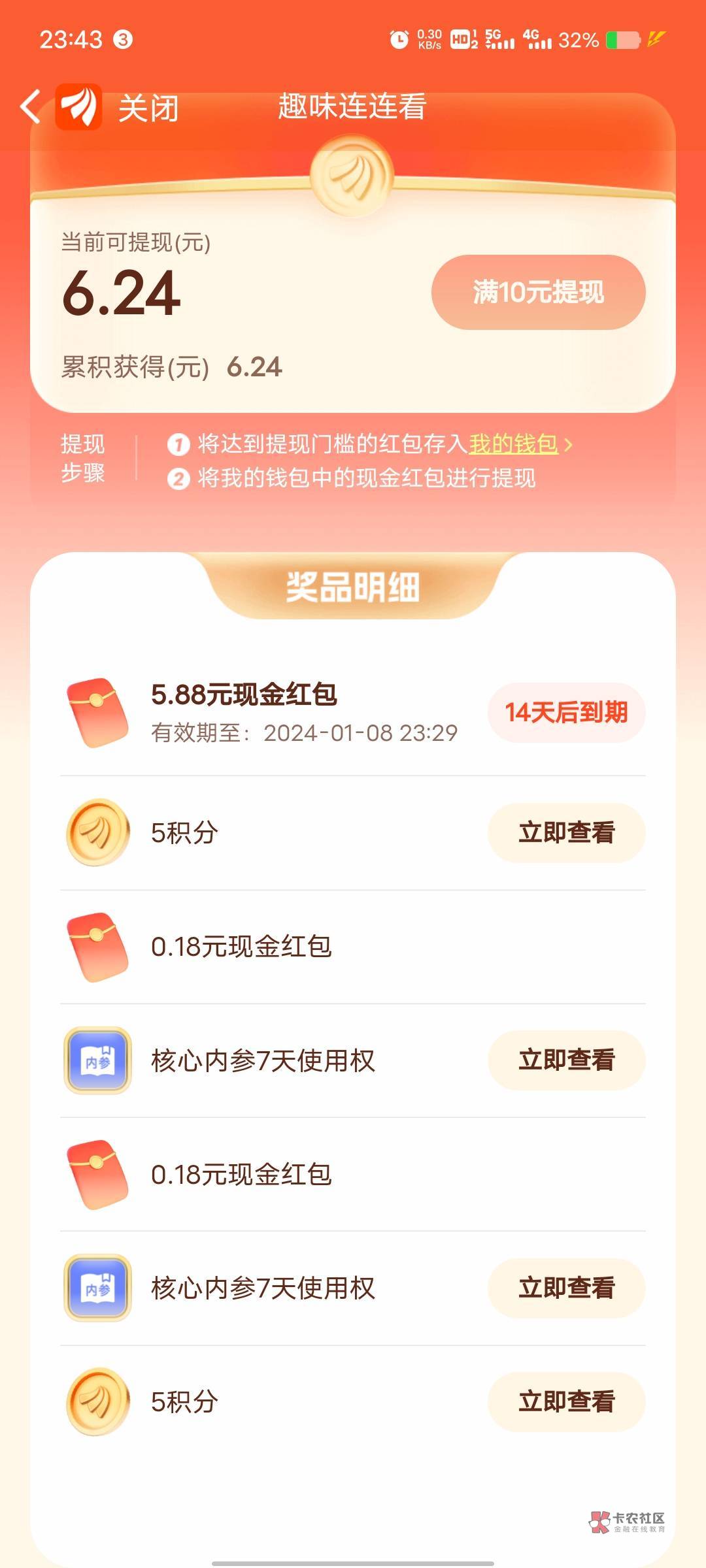 不能提现满10