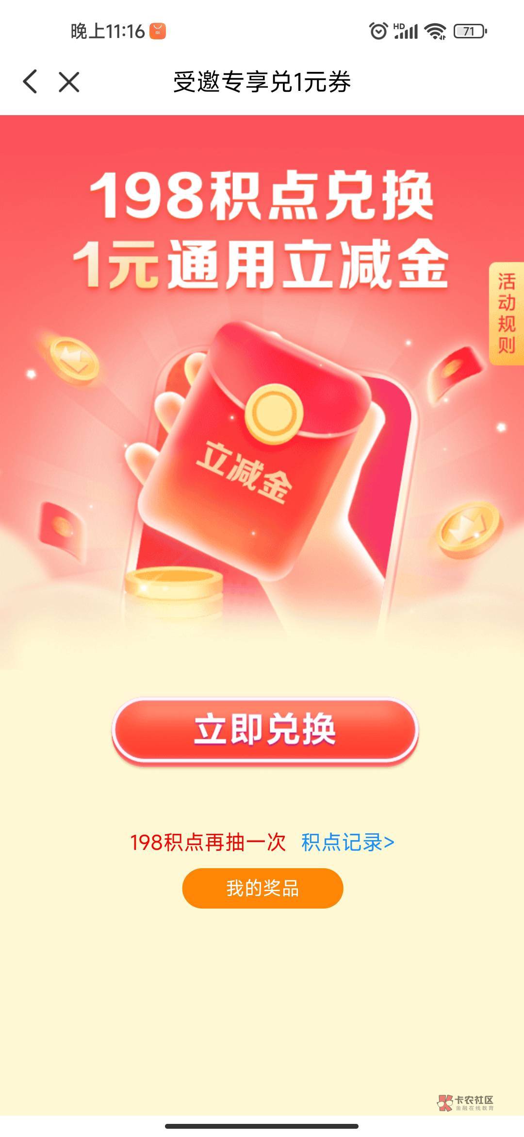 ,总之就是每天一张满二减一的立减券,血亏,我发现我支付宝就能T,但是快结束了