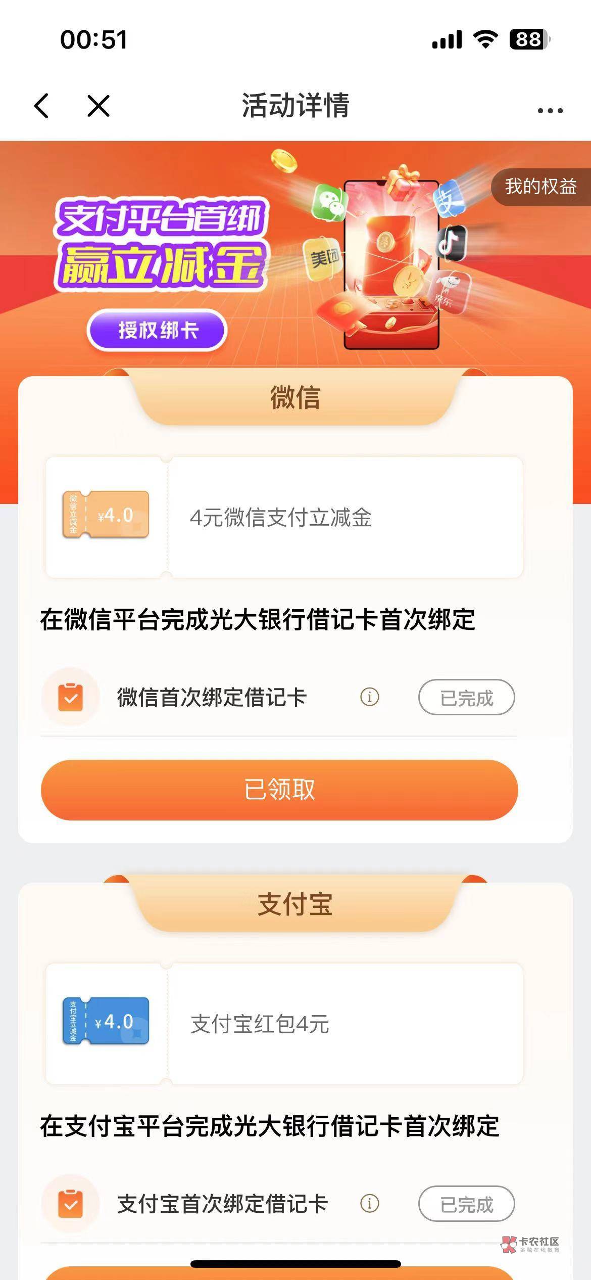 我是直接绑定的 只要绑定没绑过的卡就行