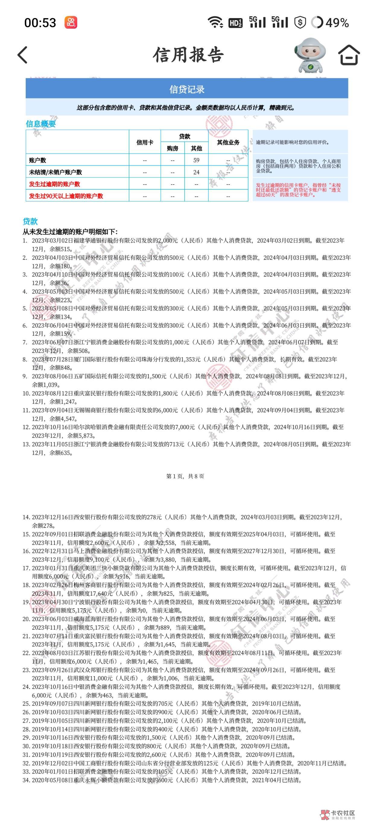 我跟你一样的信用报告,23笔未结清账户,也是查询多。半年三十多次查询,中介说做不了让我等三个月