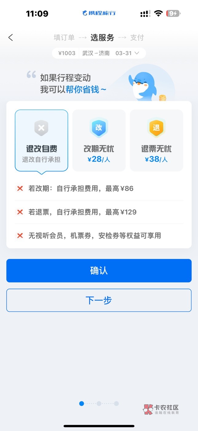 你直接点下一步到了那个出行那里还是服务那里,你就可以选一个前排包,如果你的那个钱是980的话。