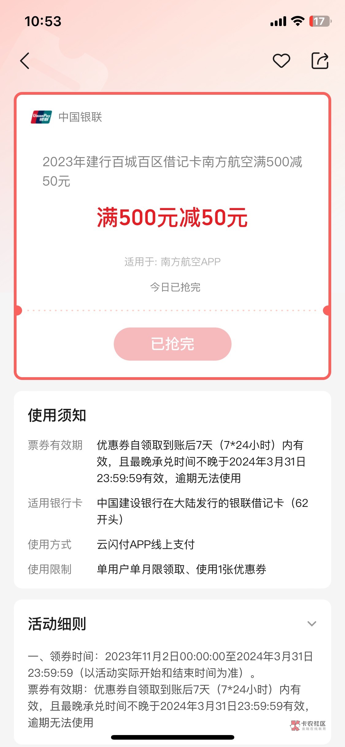 不是老哥,那张券上面写只能在南航app上面用,可能我找错券了,但是-50的好像就那一张