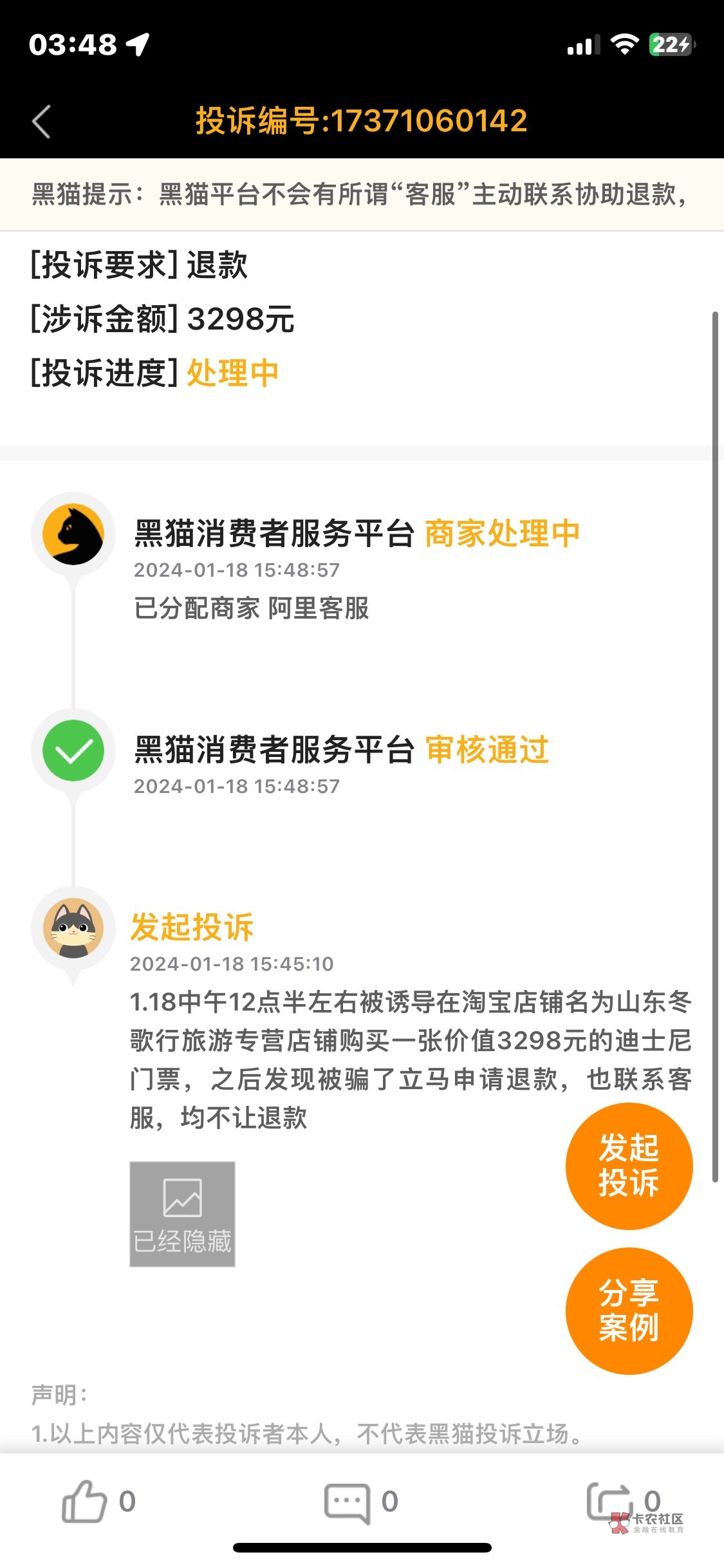 黑猫搜迪士尼退票,最好去消费保先投诉一波