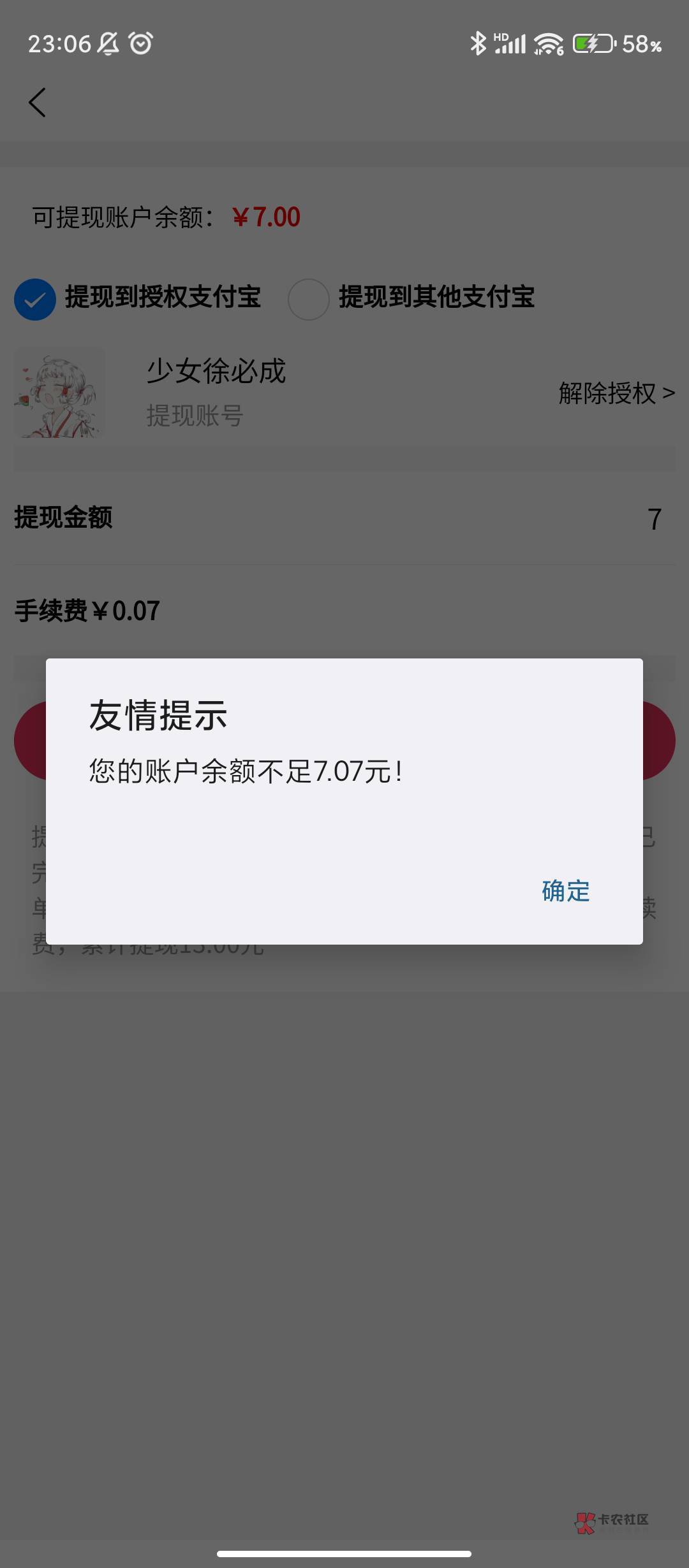 但是提现的话,他只给提6块。