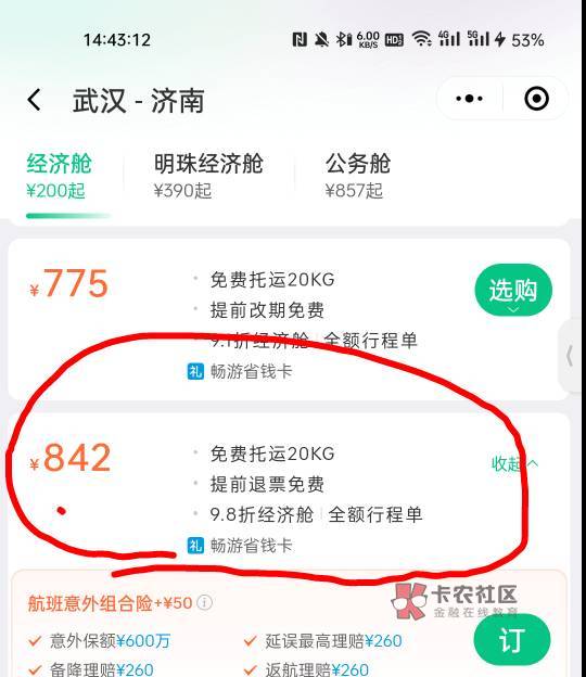 第一个你还没点进去 这界面是多个航班 点第一个南航就是一个南航里的不同价格 找到845免退票就行