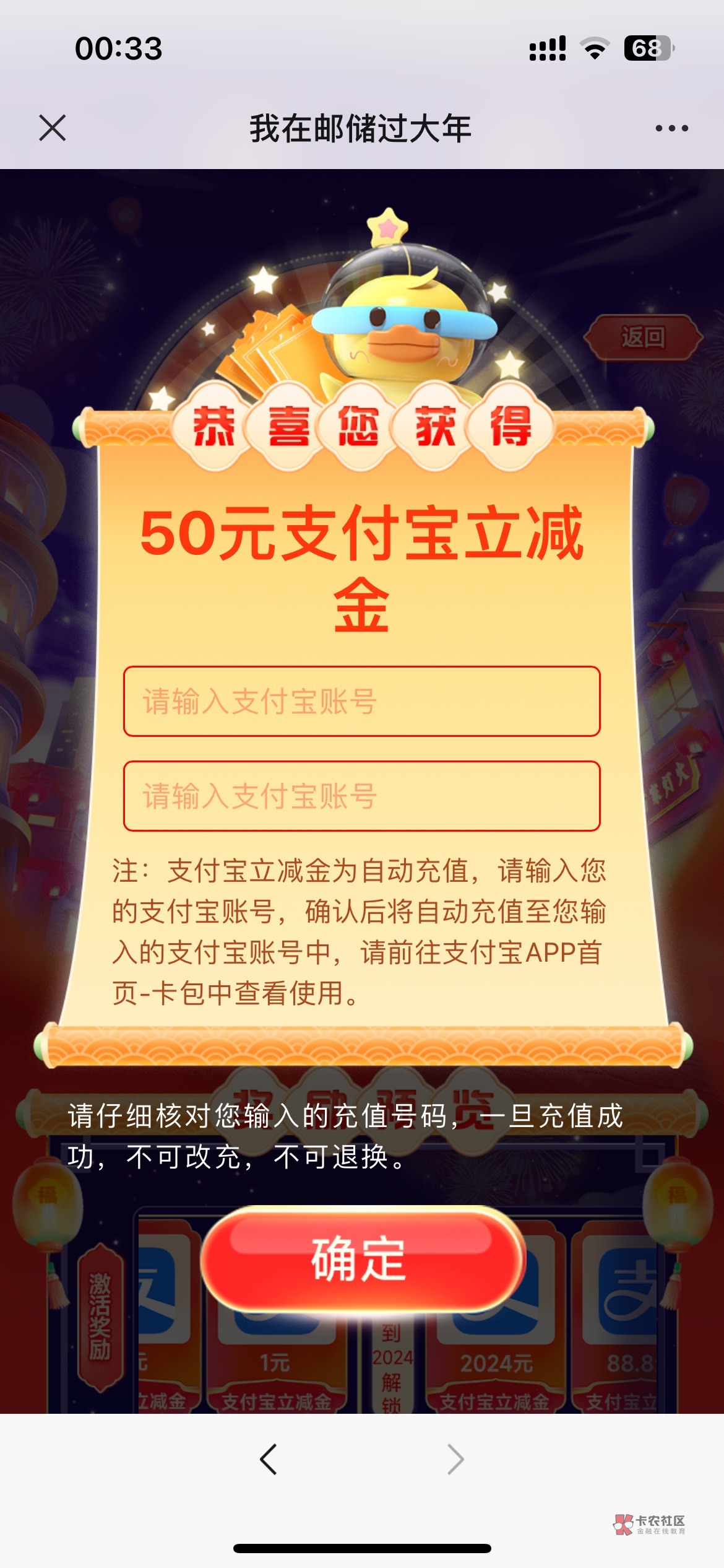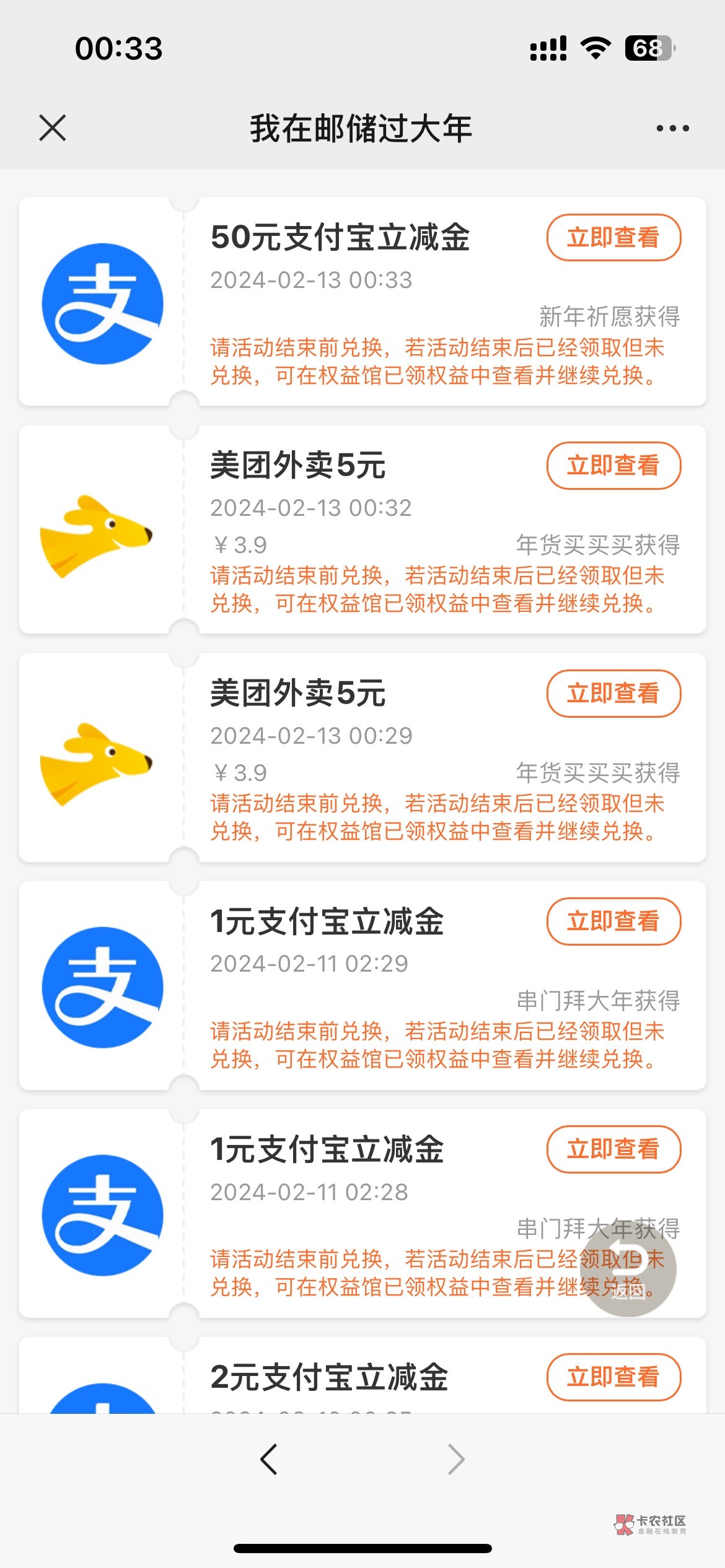 你知道吗?这个买卡券不能用立减金,刚用建行带立减金买,直接提示金额不对,给退款了,Mr稚于最初 发表于 2024-02-13 00:52