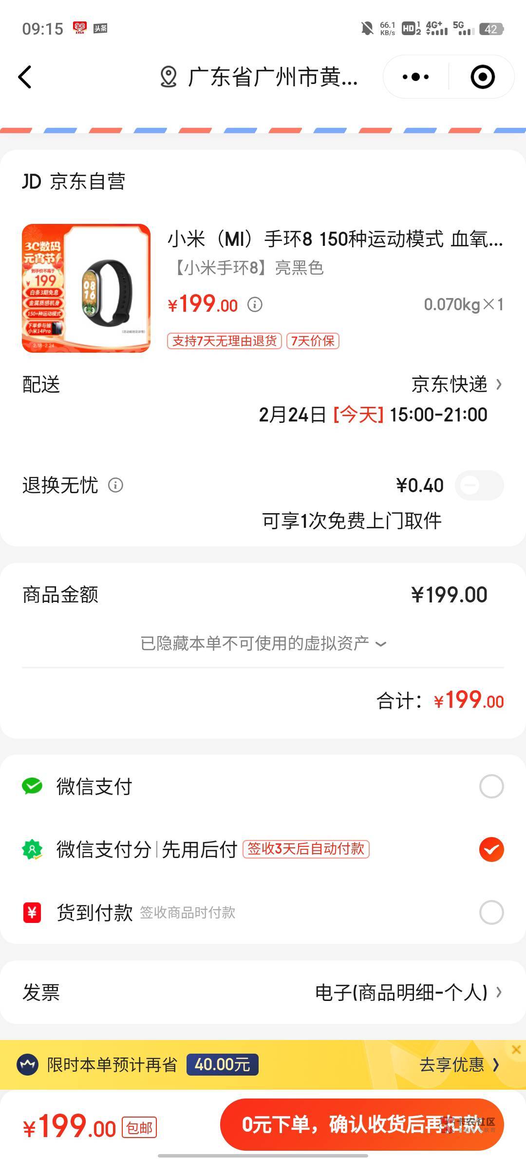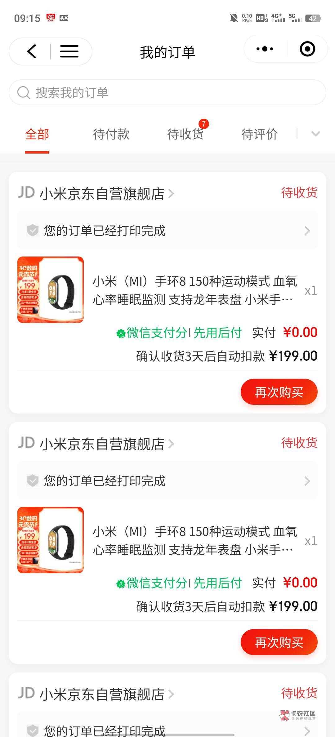 微信搜京东小程序,然后用先用后付下单,小米手环8