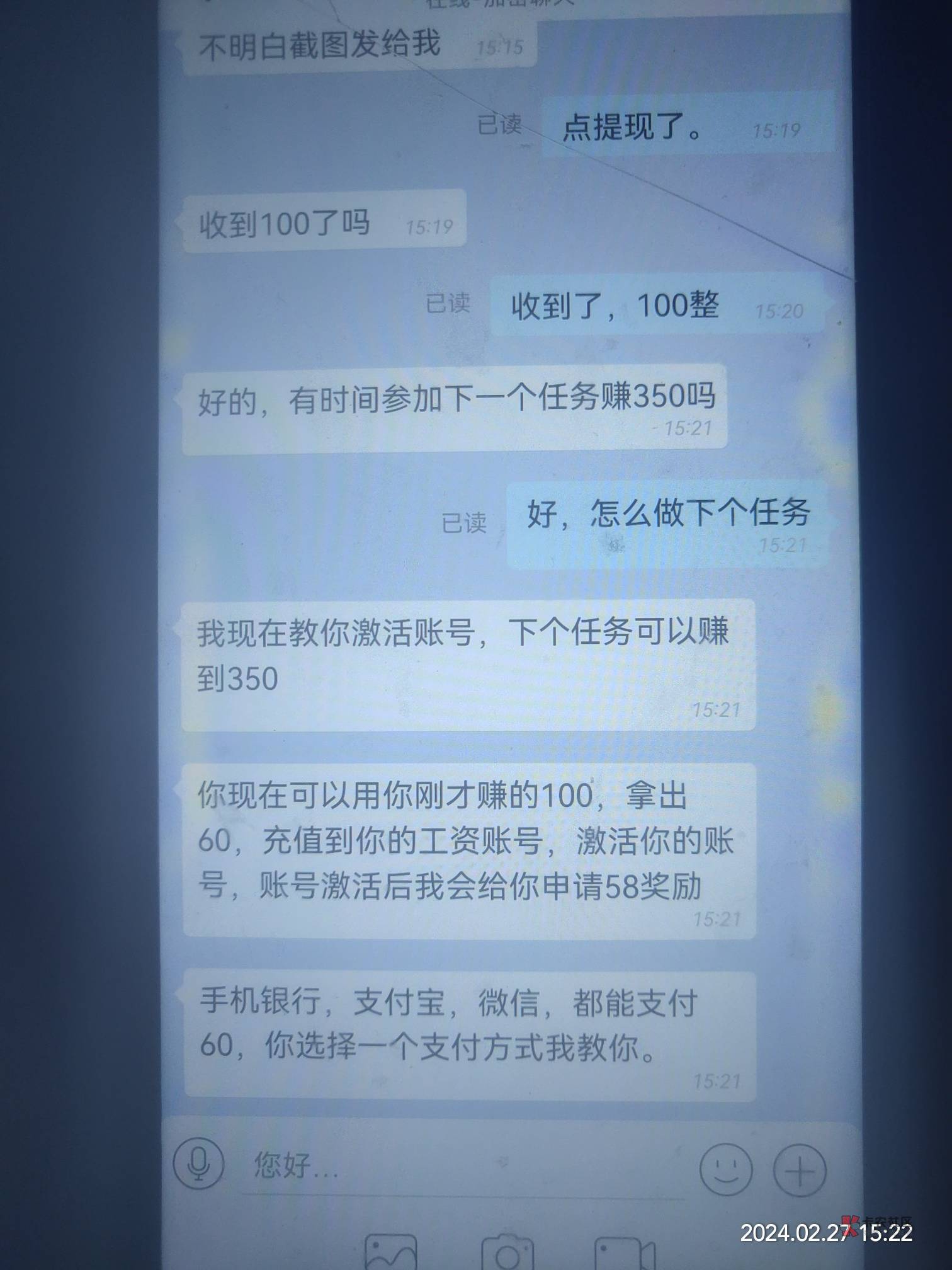 给我来的短信。加的