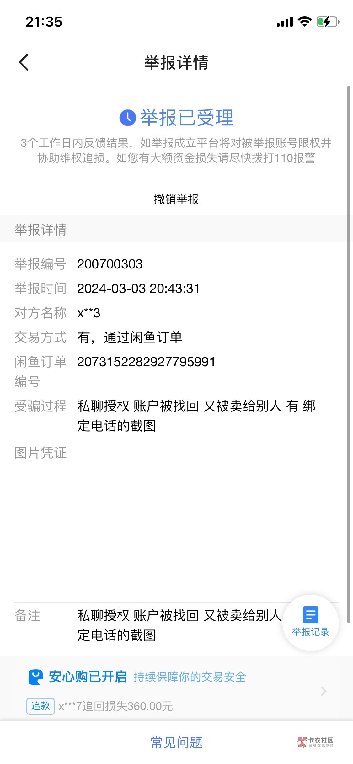 直接找咸鱼客服处理
