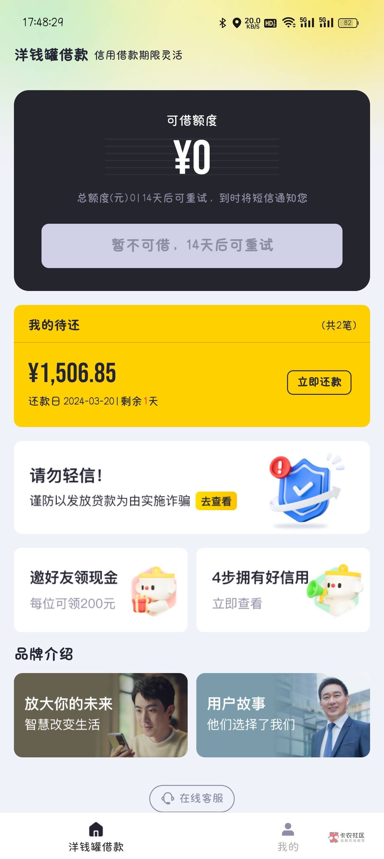 你是说yqg吗?这个东西前年十月份就T路过一次,四月份才能复借。可能和我经常提前还款有关,借一期还清最少得一期,就可以继续再借不用等最新的还款三期了