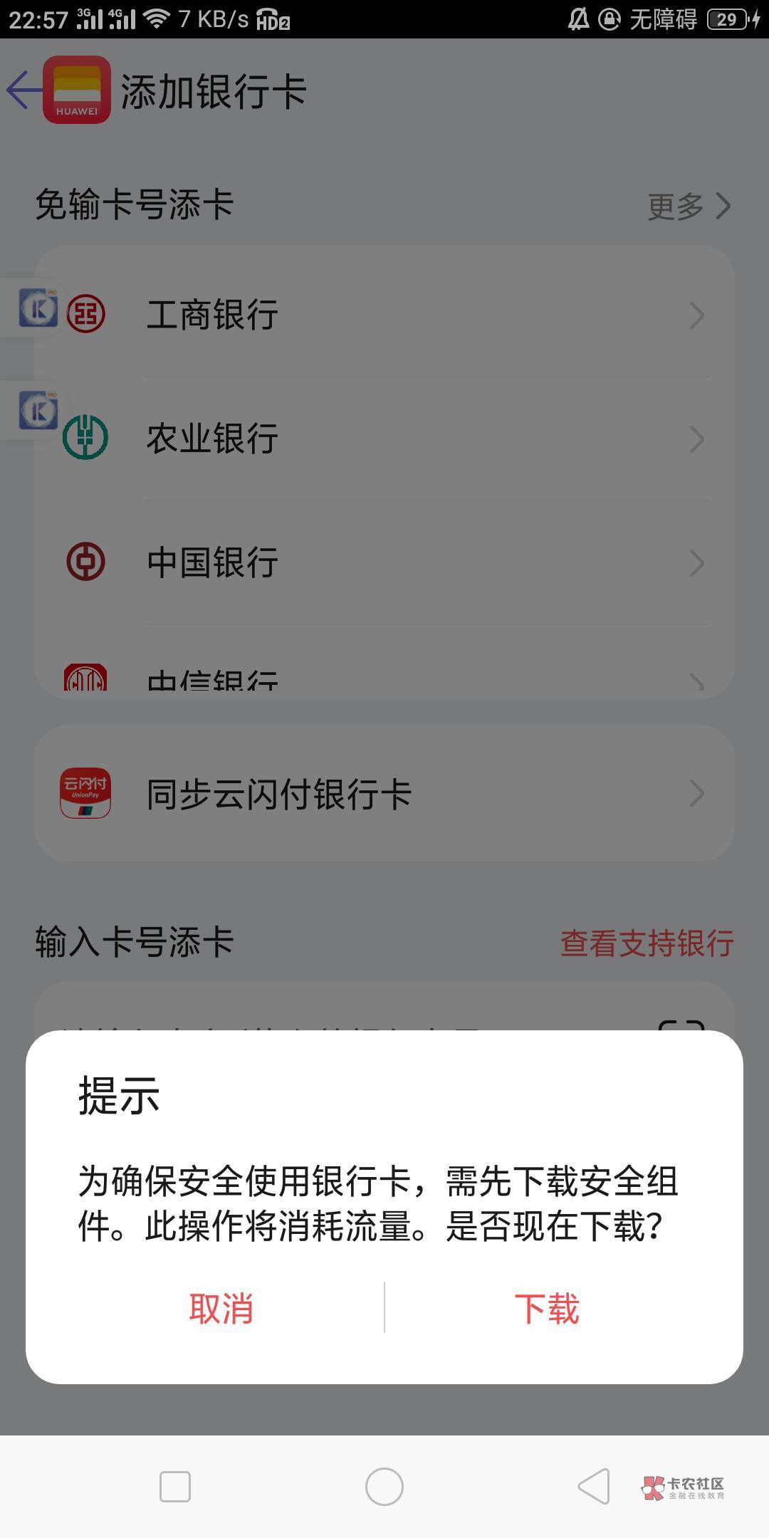 华为支付绑卡什么都没有