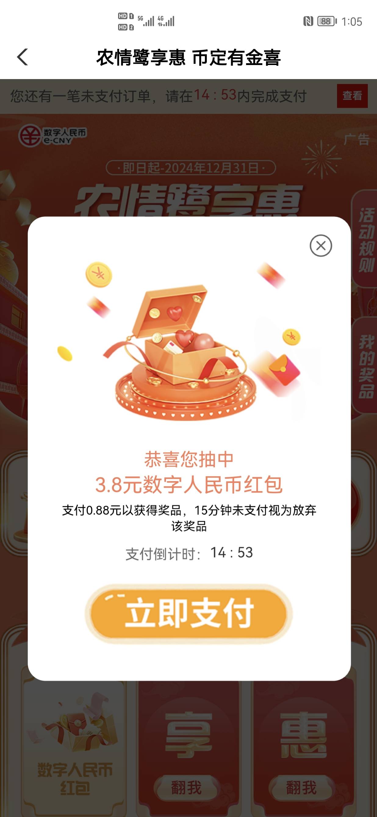 你不付款可以等15分钟再抽