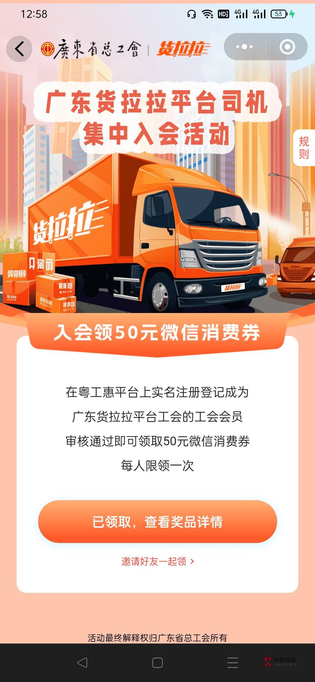 我是10点直接申请的广东货拉拉工会,新号申请的一个小时就通过了,没有下什么货拉拉,直接领的秒到