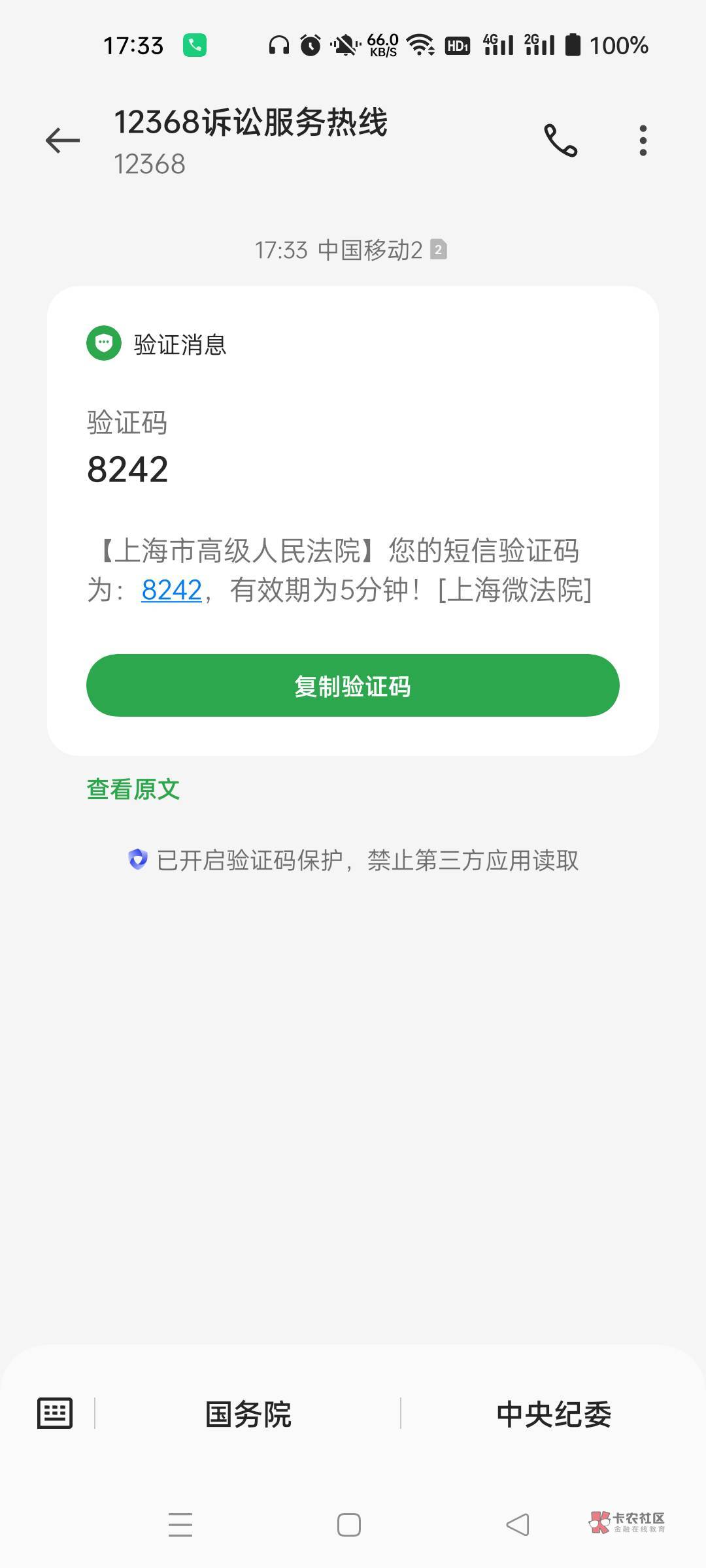 只是个验证码 我还以为是法院来短信了
