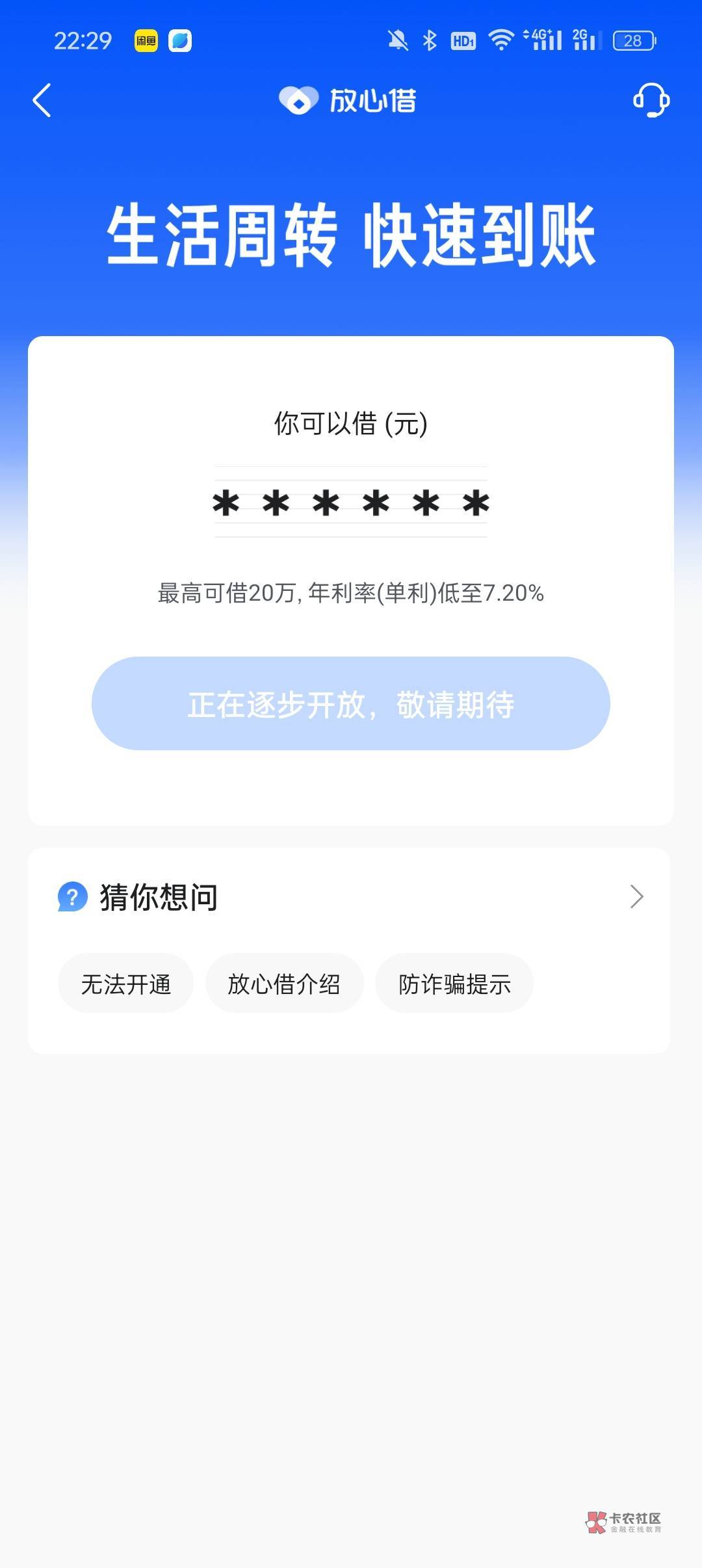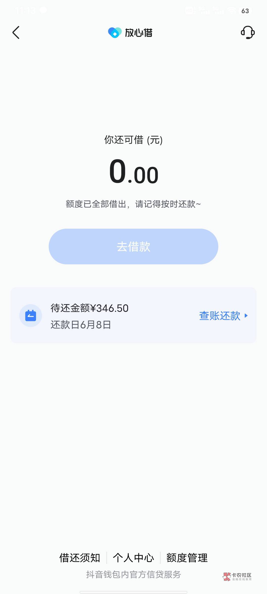 补充一下:刚才发现,我到账信息是卡2收的短信,那是我的一张副卡,平时没怎么用,上个月闲着没事重新把抖音里面放心借的电话改了,然后这次申请就过了。