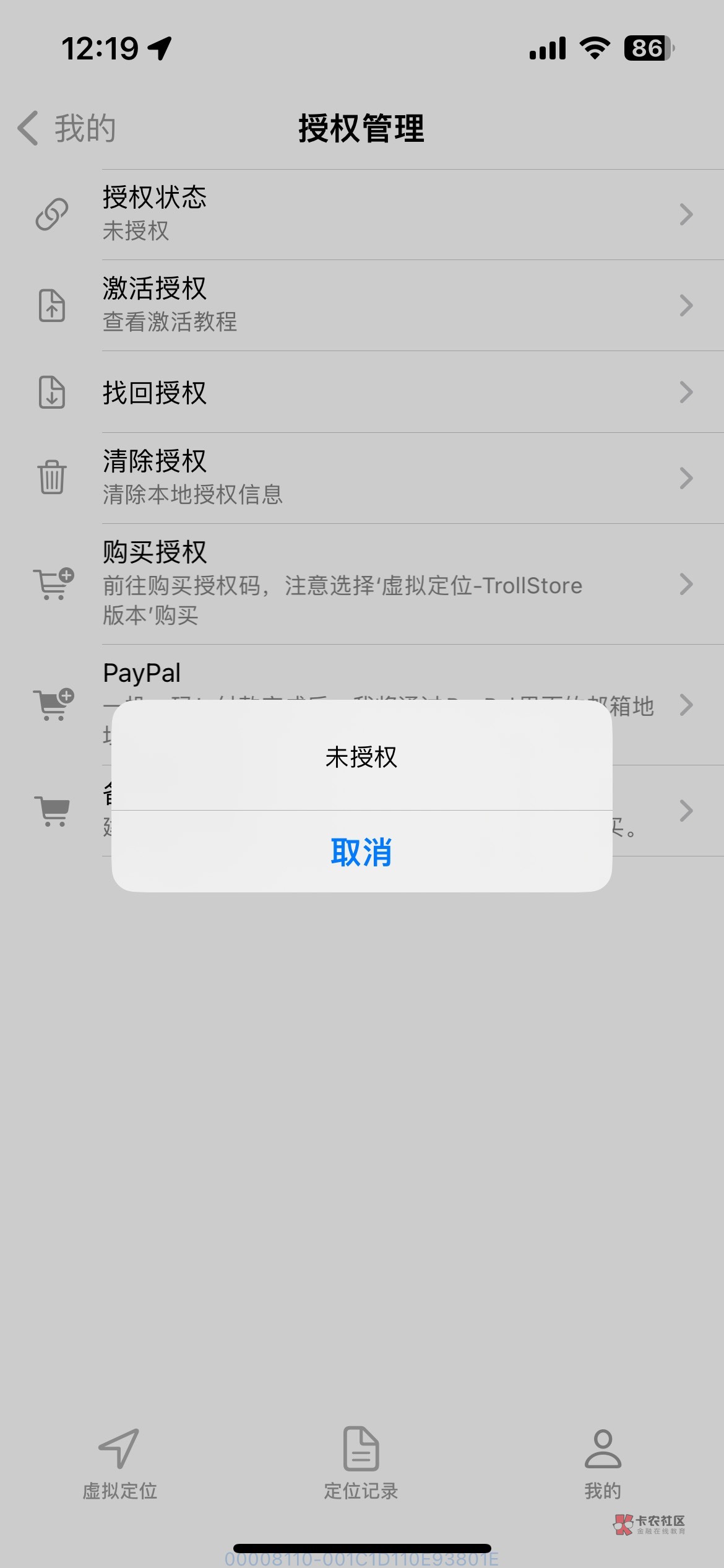虚拟定位装好了,未授权啥意思,要钱买激活码吗