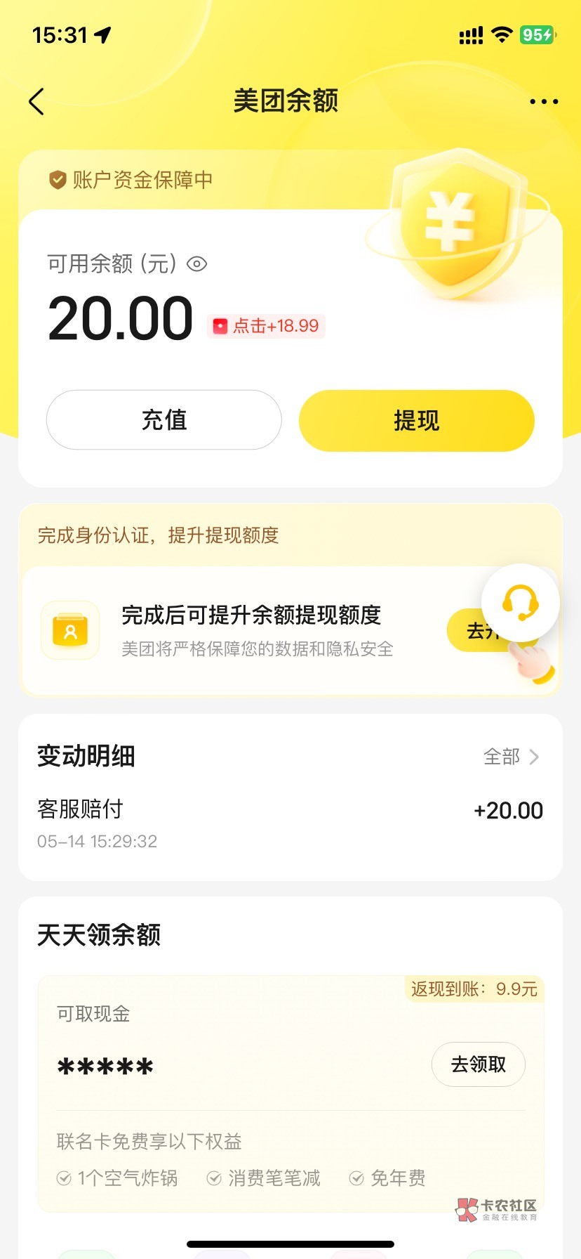 那就不知道了,我以前没参加过,但是领取失败,两个美团账号都不给我补了20