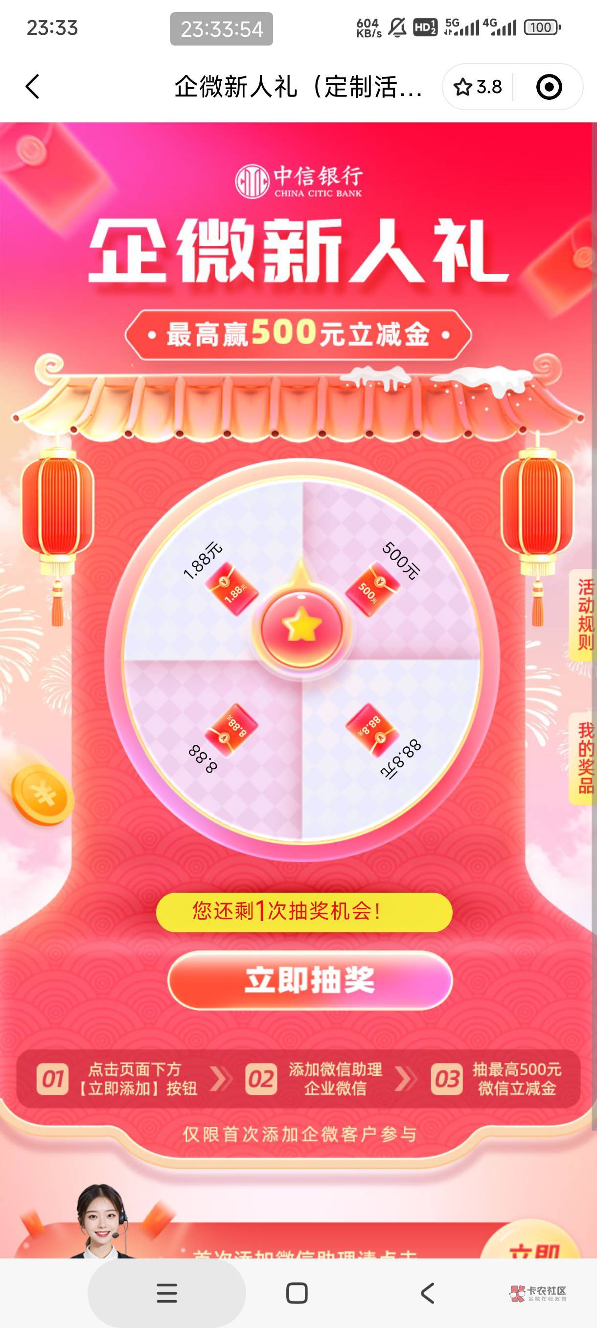 扫码进去注册加了企微就给了啊 之前抽过四次了