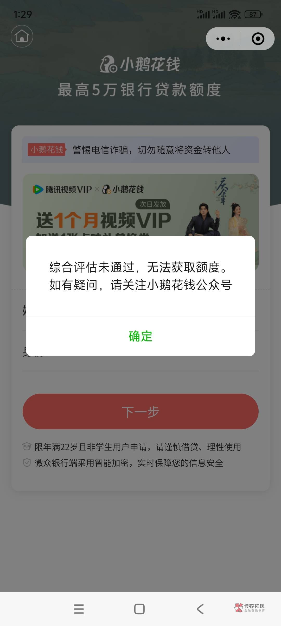 你点击的是限时送VIP吗?然后我的是跳到微信小程序里面,先申请的小某花钱,然后下面有贷款优选