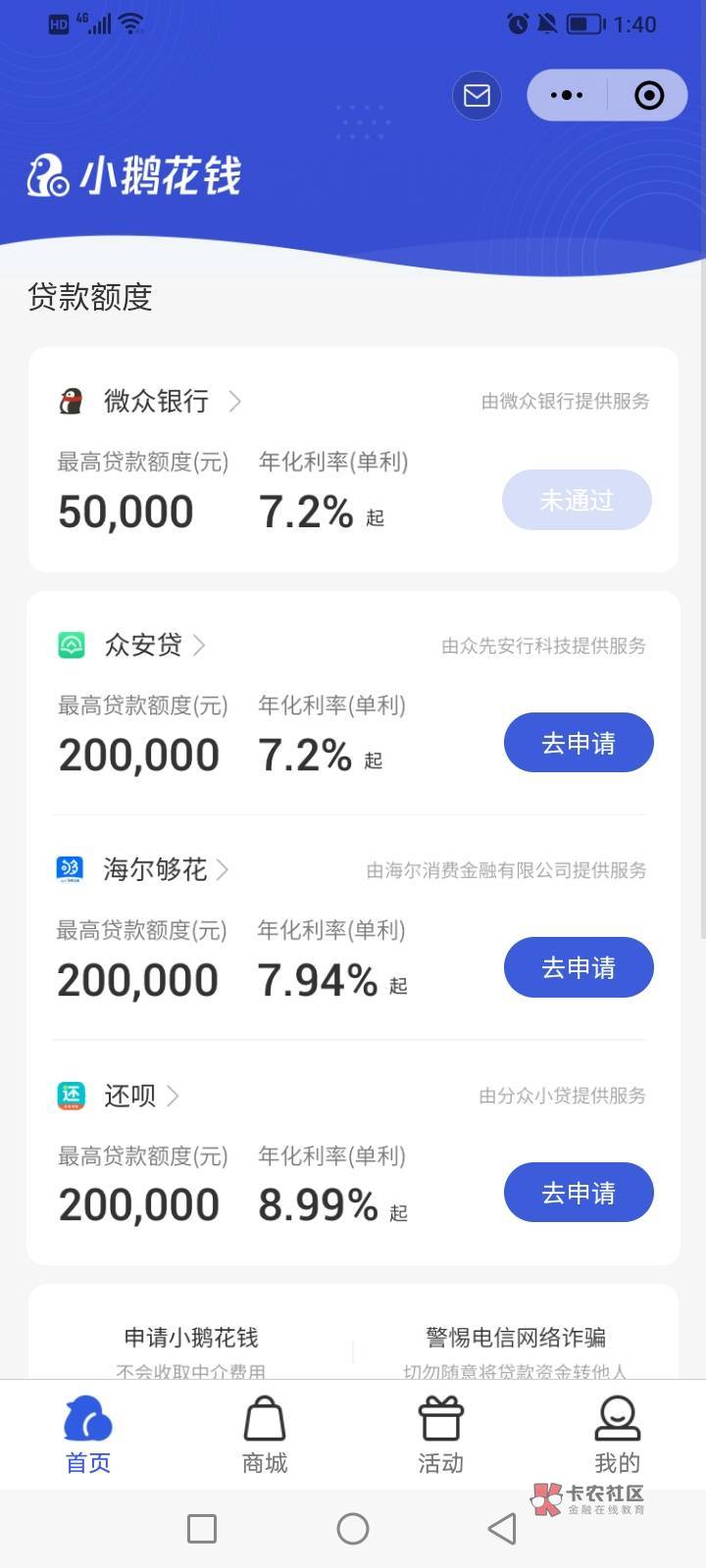 参考一下申请失败的话,点击返回小程序小某花钱首页