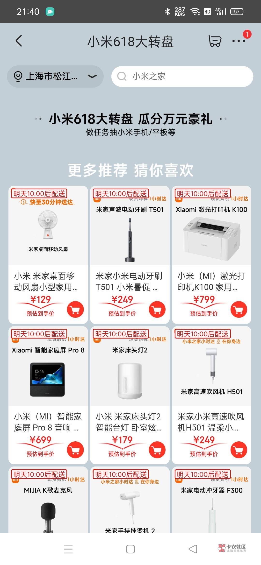 认真看入口 点秒送再点小米