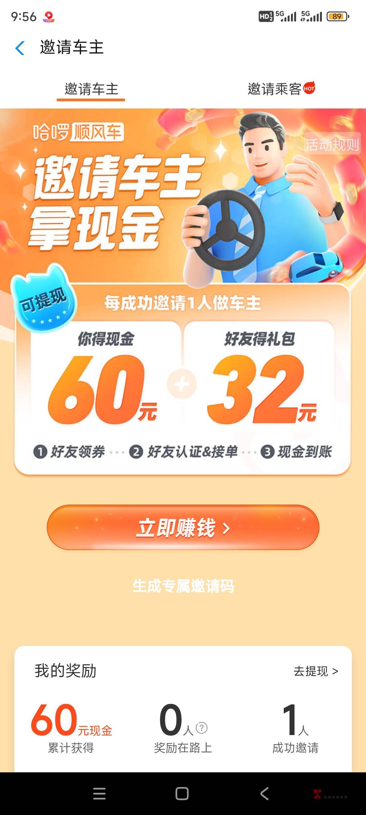 意思就是注册一个小号邀请小小号成为车主 小小号空跑一趟拿20 小号邀新60
