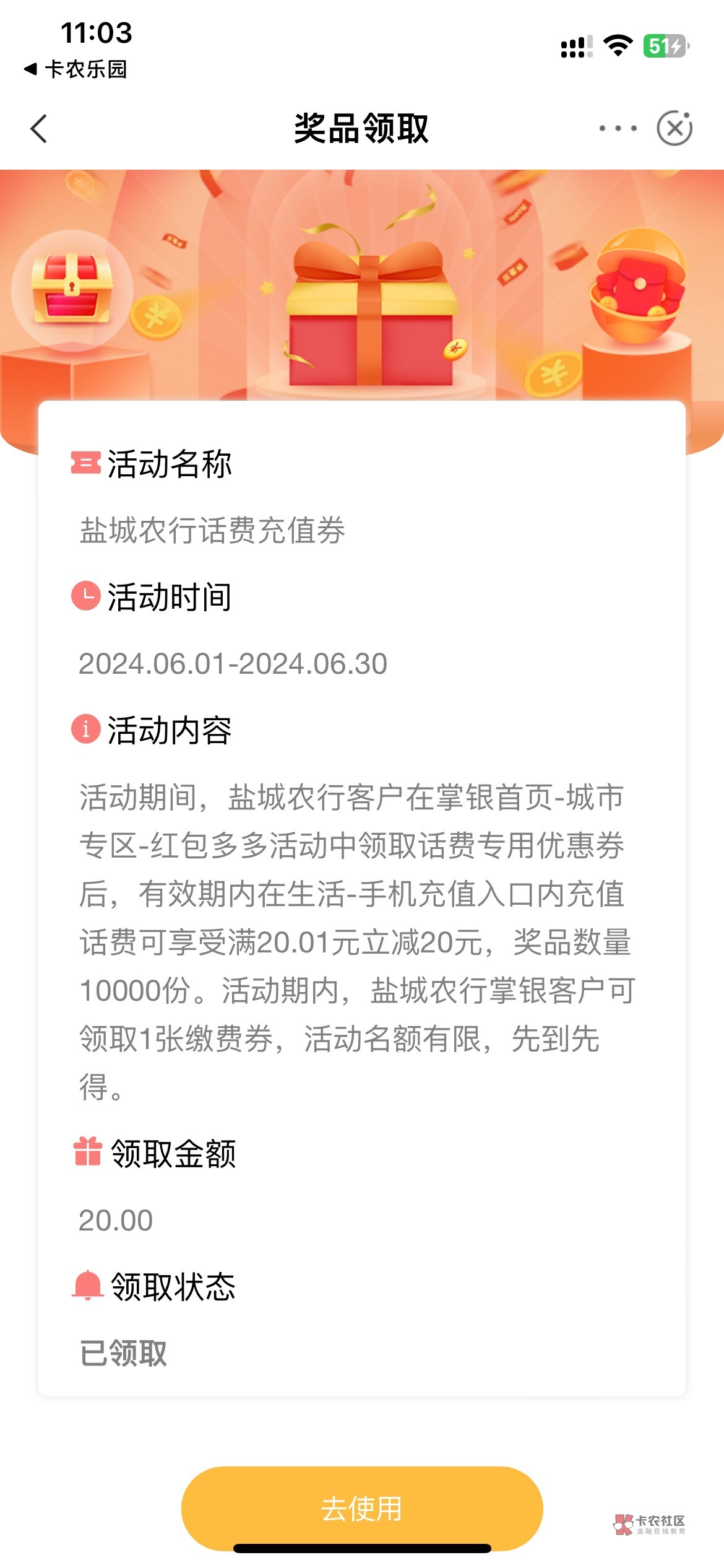 我领到了20