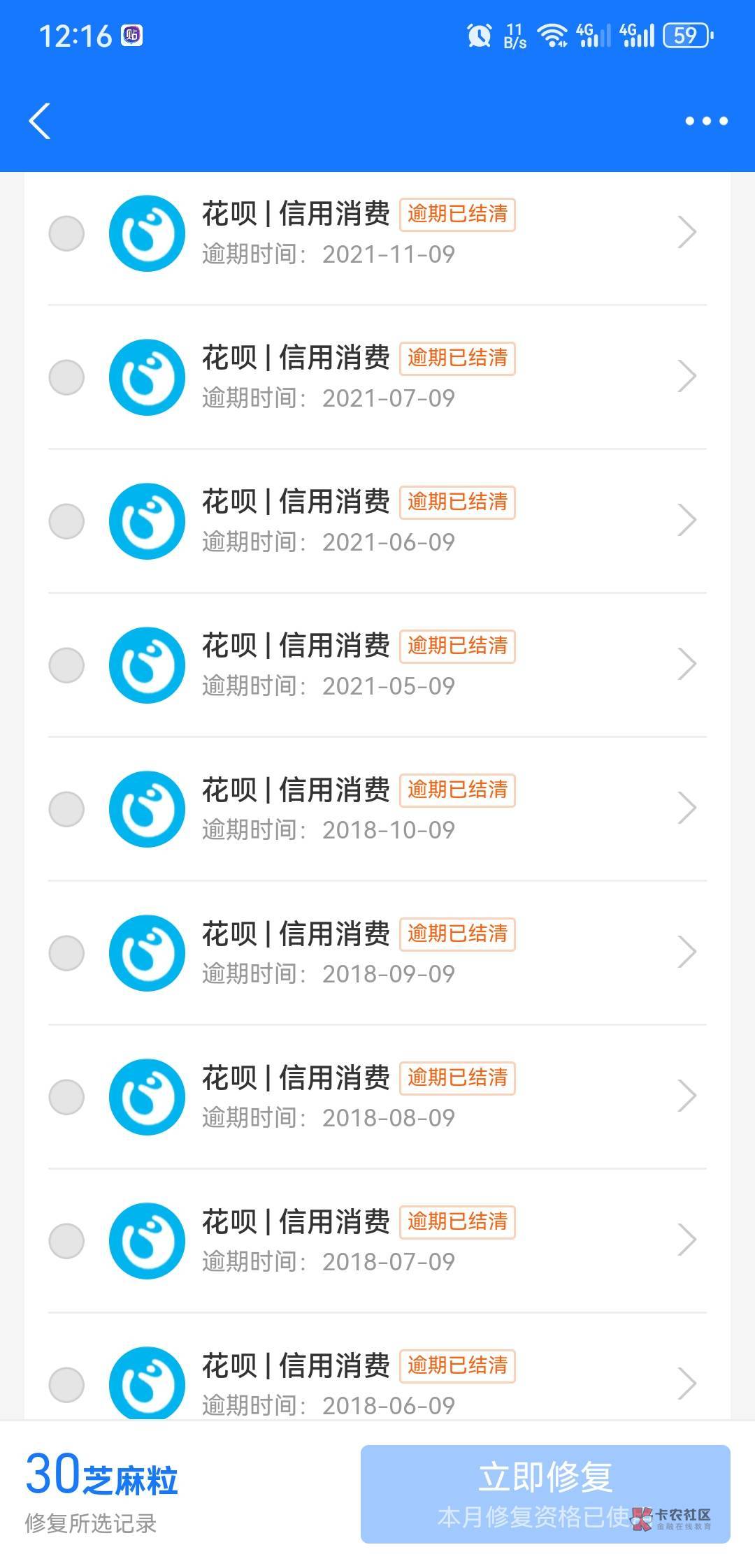 以前好多逾期,问下修复一次涨多少分