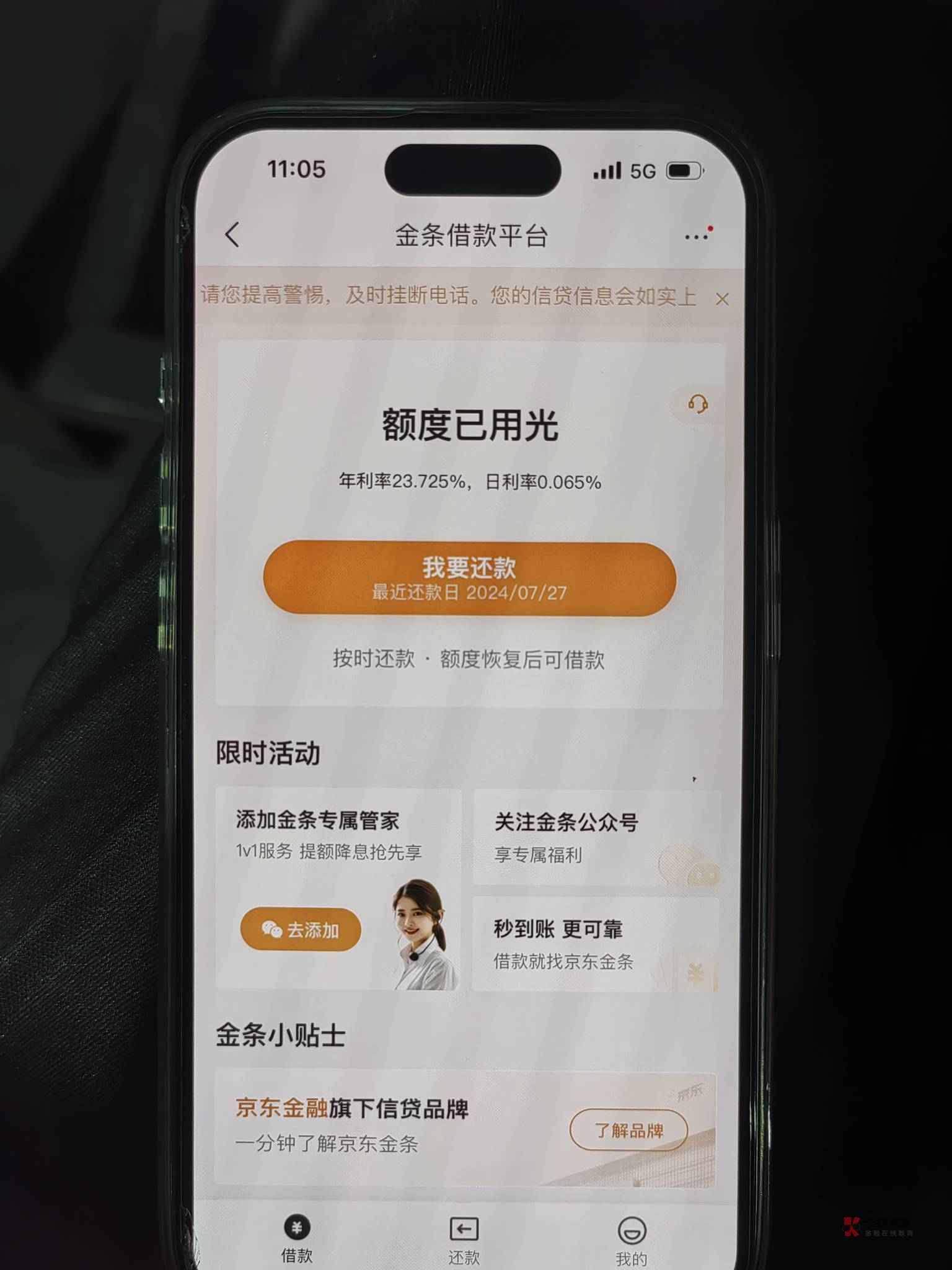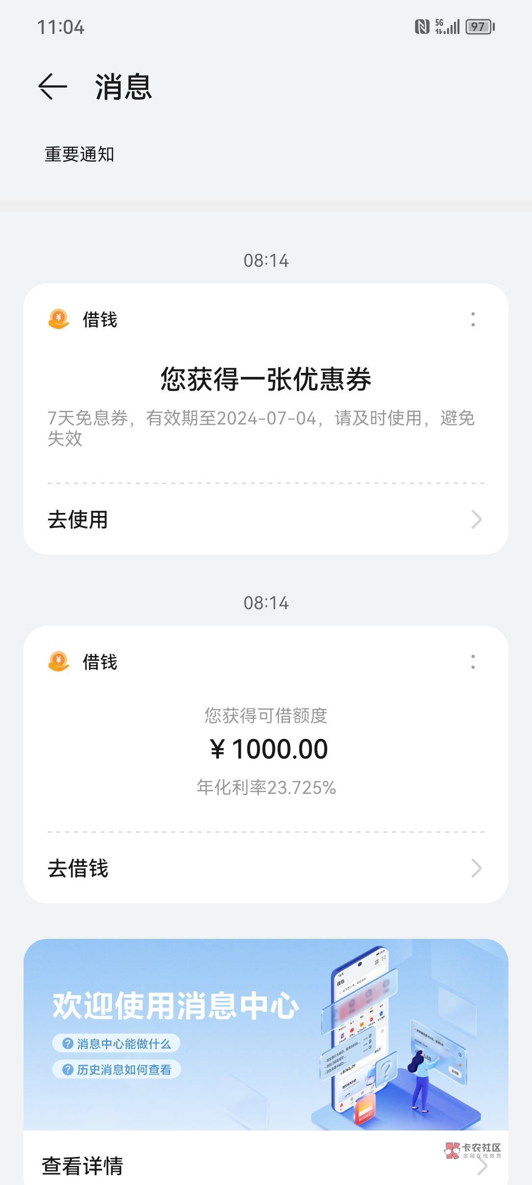 从京东金条申请不是没额度就是有额度下不了,那天华为钱包来了短信,也是匹配金条下了5000