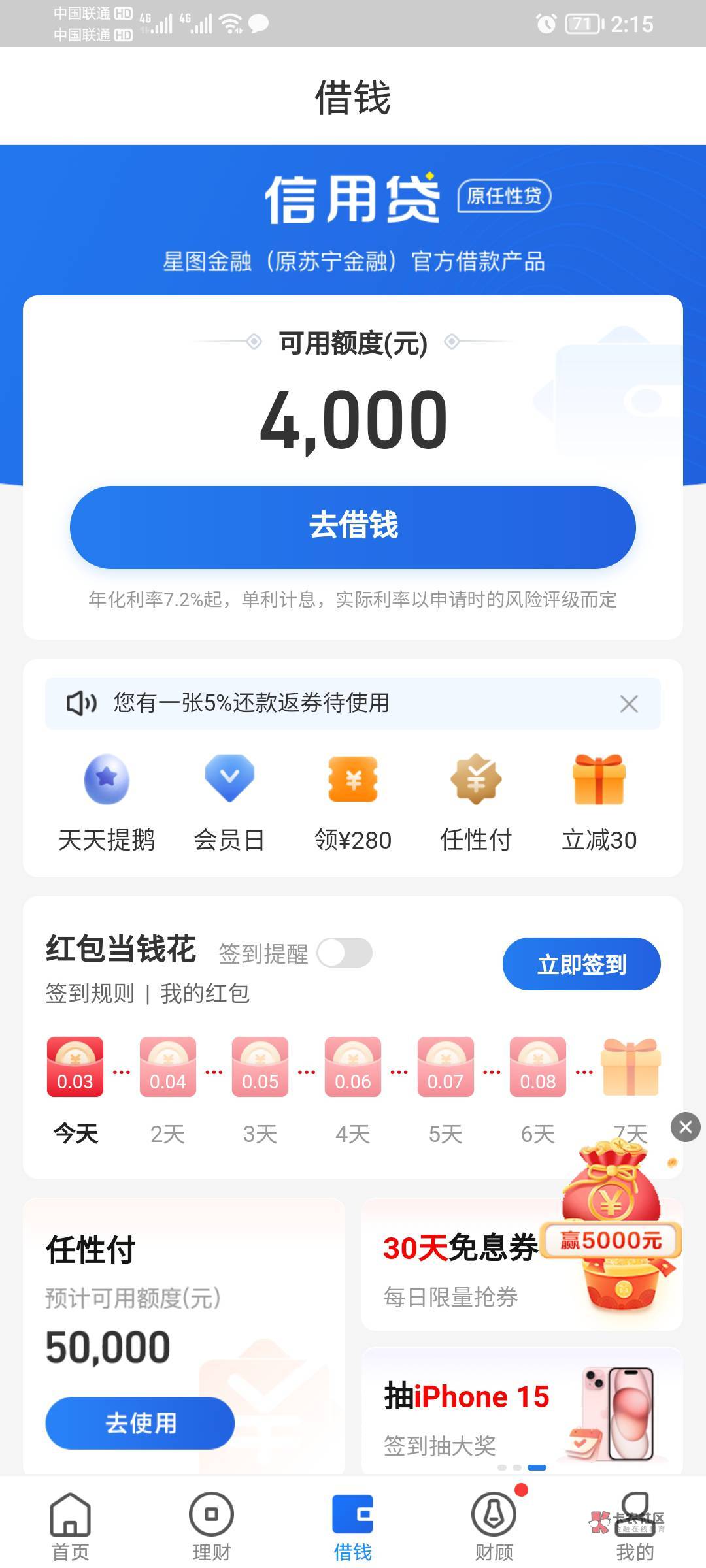额度1万多,借几千能下款吗?