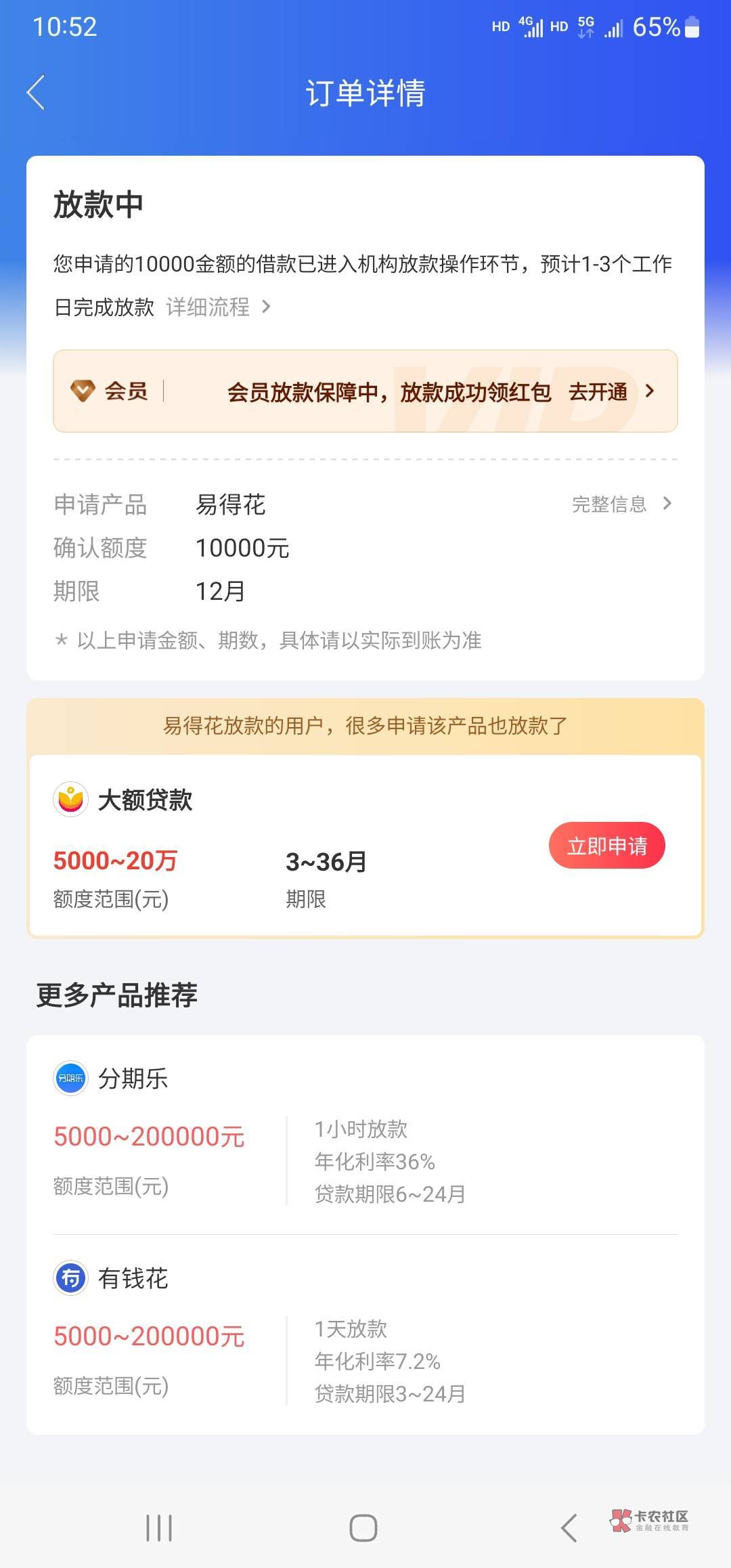 我的10000额度,四个码,放款失败了
