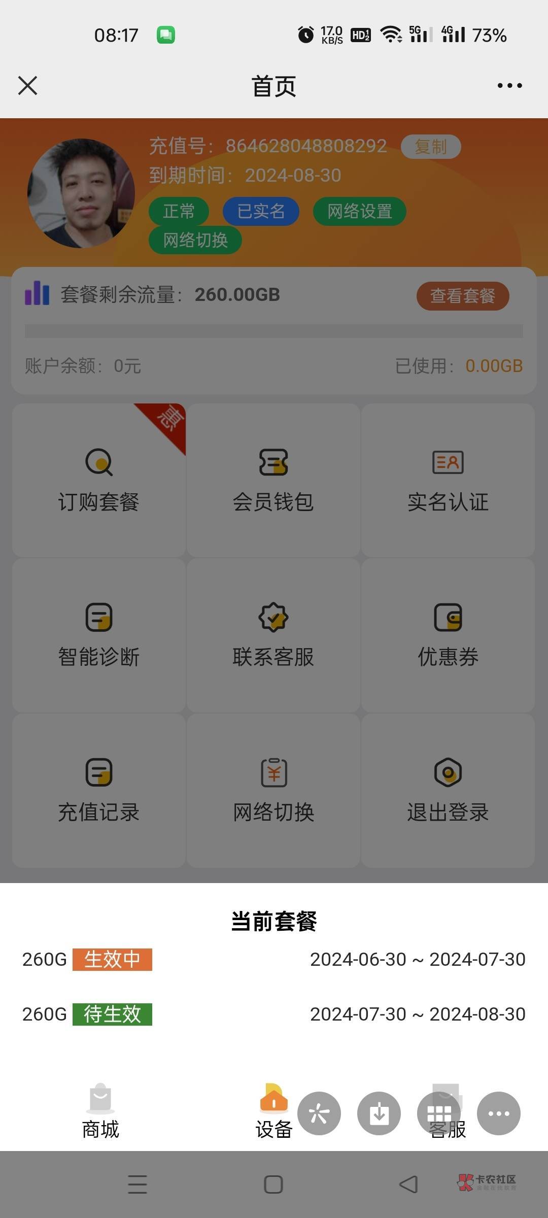 我买的是物联卡,激活以后买T餐必须得充值用余额买才有,充值最低金额100 充完用了一阵子直接断网 信号都没了 公众号也没了
