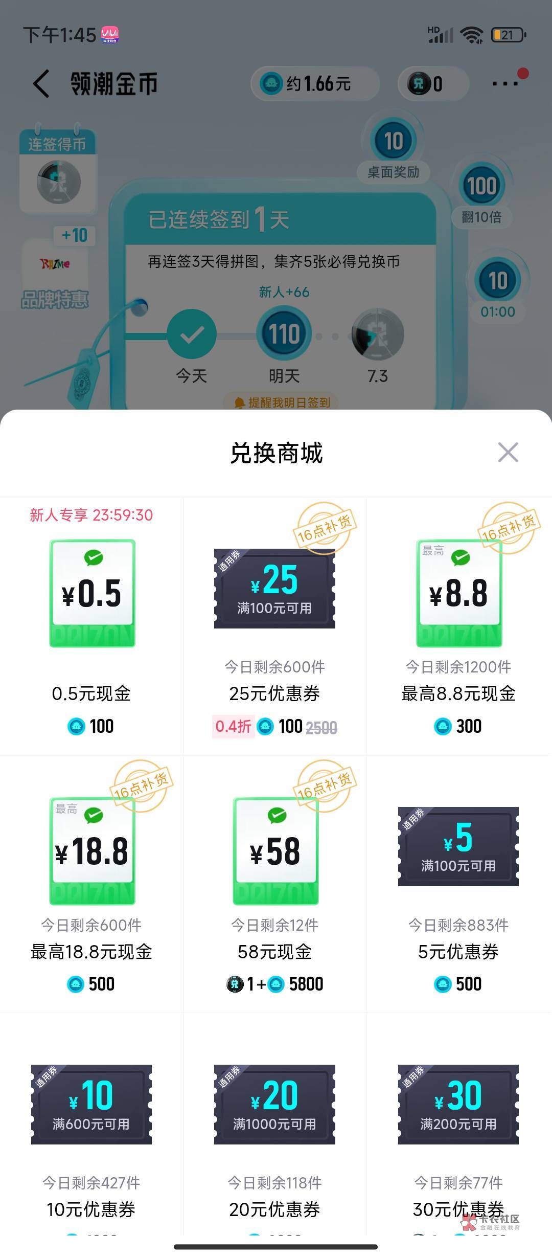 签到那里兑换的,我是新号