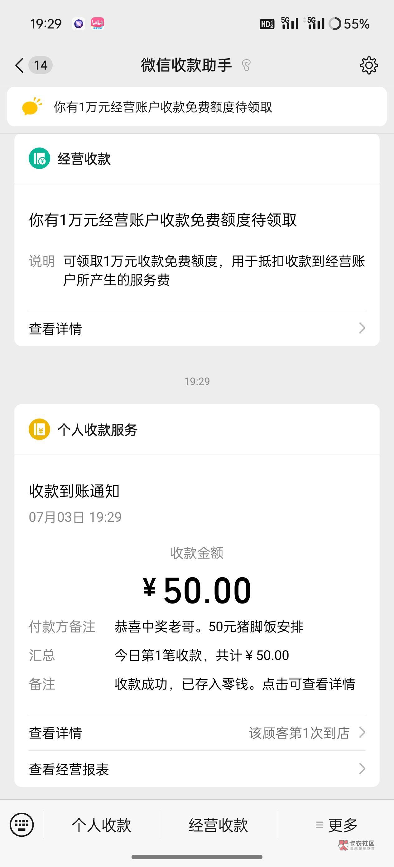 好的兄弟们,已经到账了。评论抽奖截止到第50楼,后续评论不算。晚点会让妹子在1-50选3个数字。选到的一人50元子猪脚饭。
