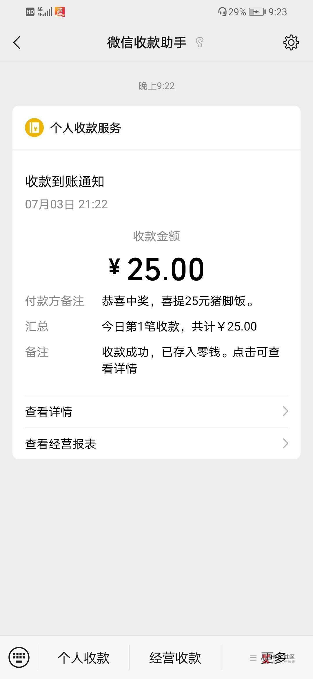 兄弟,中奖了,去我第一个帖子评论发一下收款码,支付宝微信都可以,收到钱麻烦截图告知一下。谢谢。