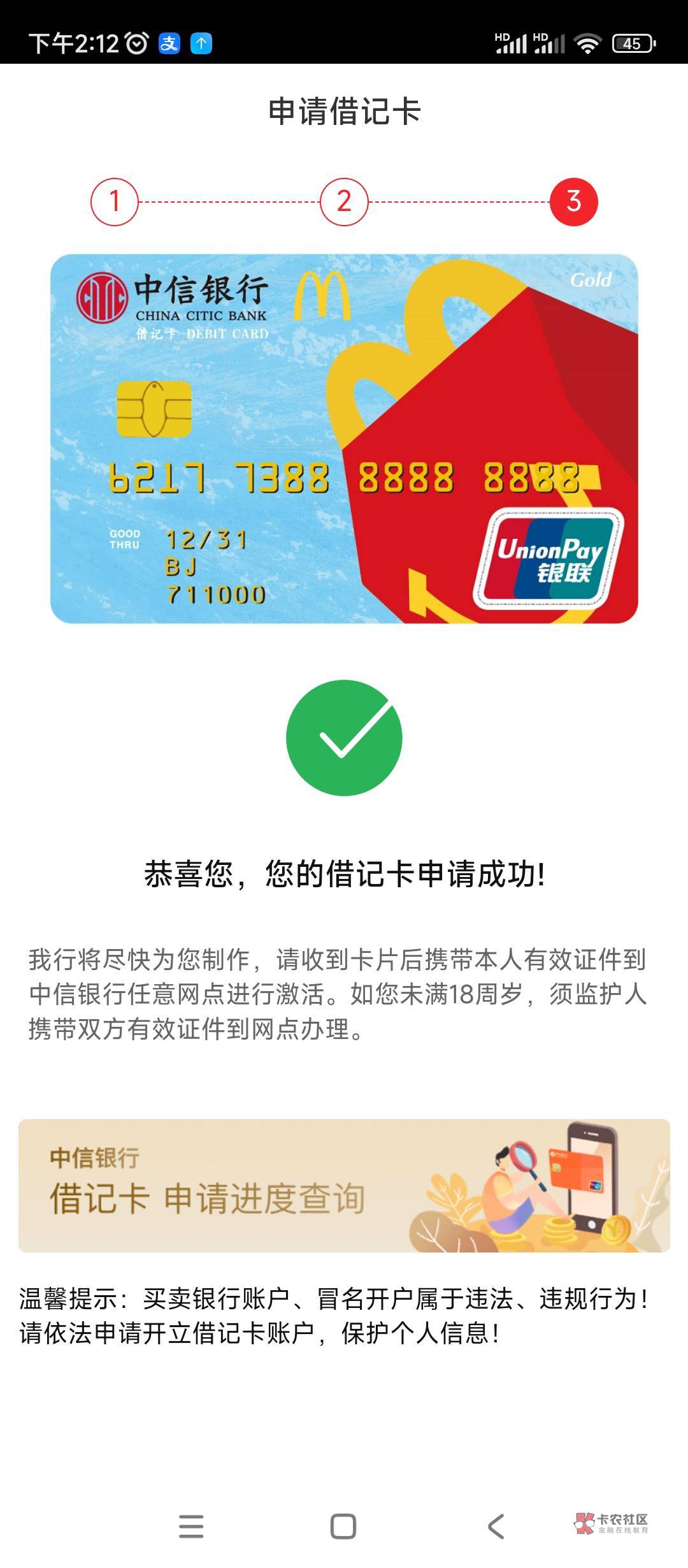 我是去年还是前年在网上申请了建行两张龙支付卡,因为头一次申请我看没有提醒没有过,就是一直在审核,然后我又提交了一遍,过了有一个星期左右吧,最后网点那边打电话说我有两张卡然后去激活一下,最后我抽时间过去转了一圈,他们当时刷有两张,然后问我要不要同时激活,我说可以,但是嘛,两张他都要给我激活一类,我说可以都可以最后他们那边系统一检查就是一个人只能使用一张一类,最后就把另一张降为二类了,什么都没问