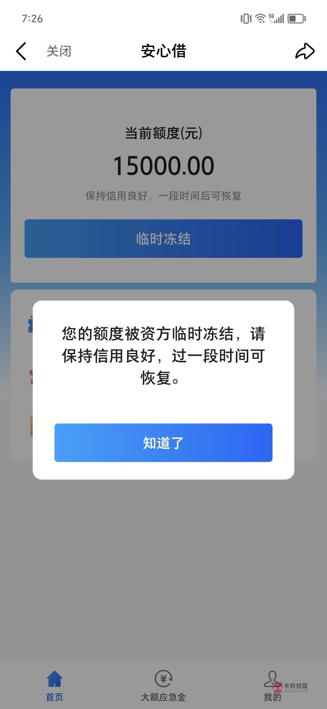 上一秒还显示放款中,下一秒临时冻结了