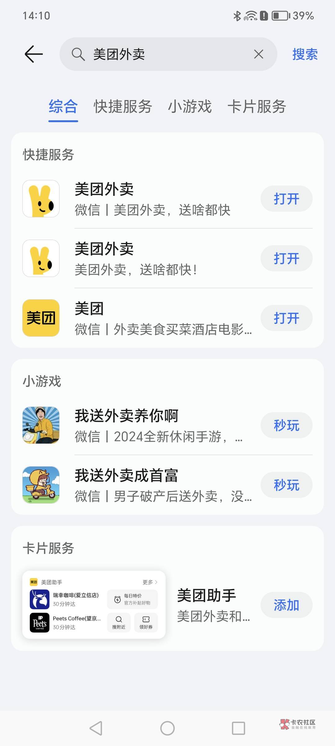 快应用点进去有个美团外卖。