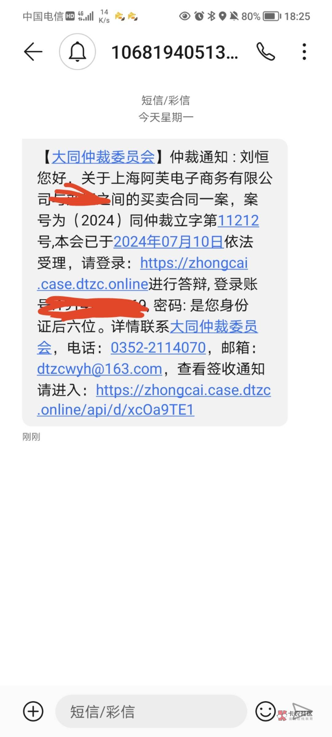 我今天也收到大同仲裁了