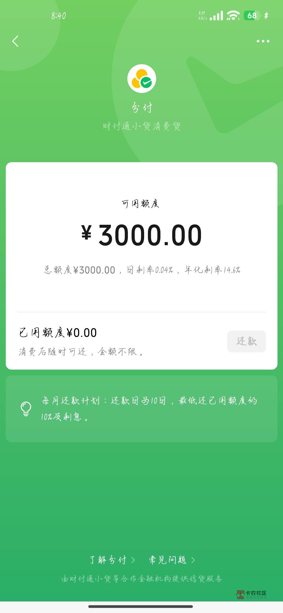 就刚刚微信钱包有个红点,就看到分付入口了