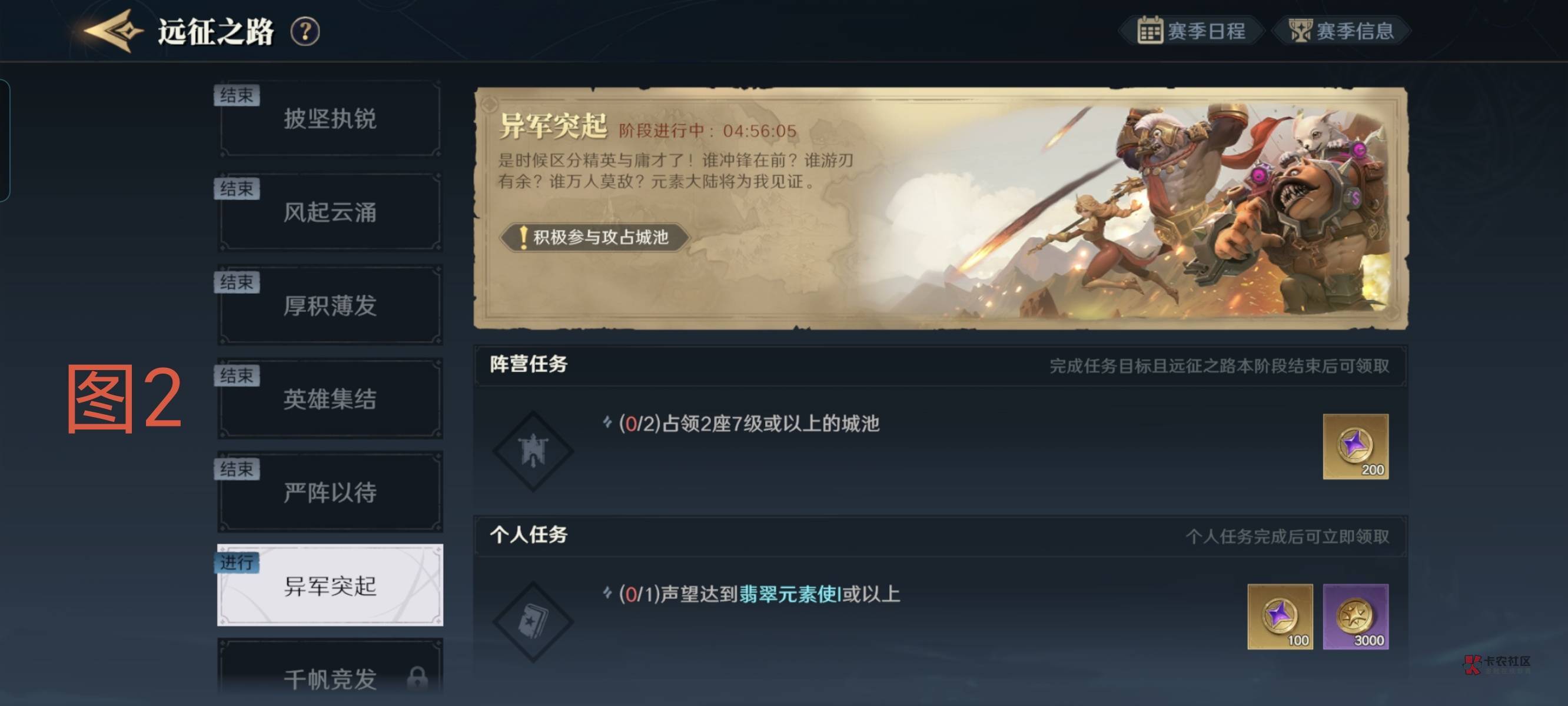 第一,进游戏用他默认的阵营,新手教程过后,首先去左上角签到,左下角邮件领奖励,然后去世界聊天,红点开荒领奖励,如图1。右下角远征之路点进去领奖励,如图2。组队用系统送的2个金色企鹅,加个自带的奶妈(如果你抽到金色奶妈或者法师就换上去),然后一直走任务,走到第十四章。