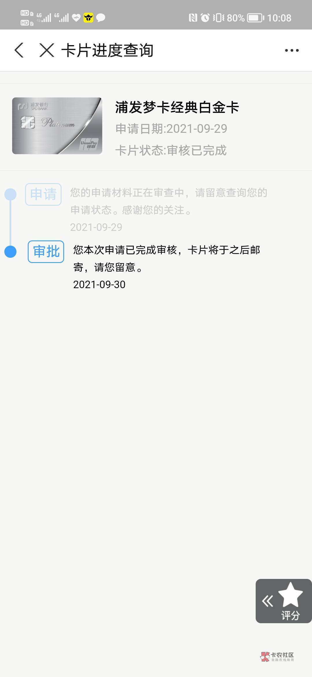 浦发信用卡,看了首页的帖子说有90天逾期也过了,昨天晚上报着试试看的心理也申请了下,支付宝入口,单位信息填的真实信息,回没回访单位不知道,今天上午打电话,只核实了一下是否本人和单位地址。然后就说打扰了挂了,我其实心里又有希望又觉得希望不大,不敢查,怕查完影响批卡。结果晚上来短信审批过了。信用报告很花,这个月申请了20多个什么也不下,查询特别多。你我贷四年前就T路了,支付宝逾期欠着呢,we2000注册都不让,应急金,薪朋友,AXH,这些近期热门的全都不过没额度。我觉得确实是水,只要信用卡没当前逾期,其它的再黑再花也可以试试,我级别不高,但是14年开始贷款,卡农很少说话,好几个号,希望喷子留情父母健在别自己不过就说别人是拖。