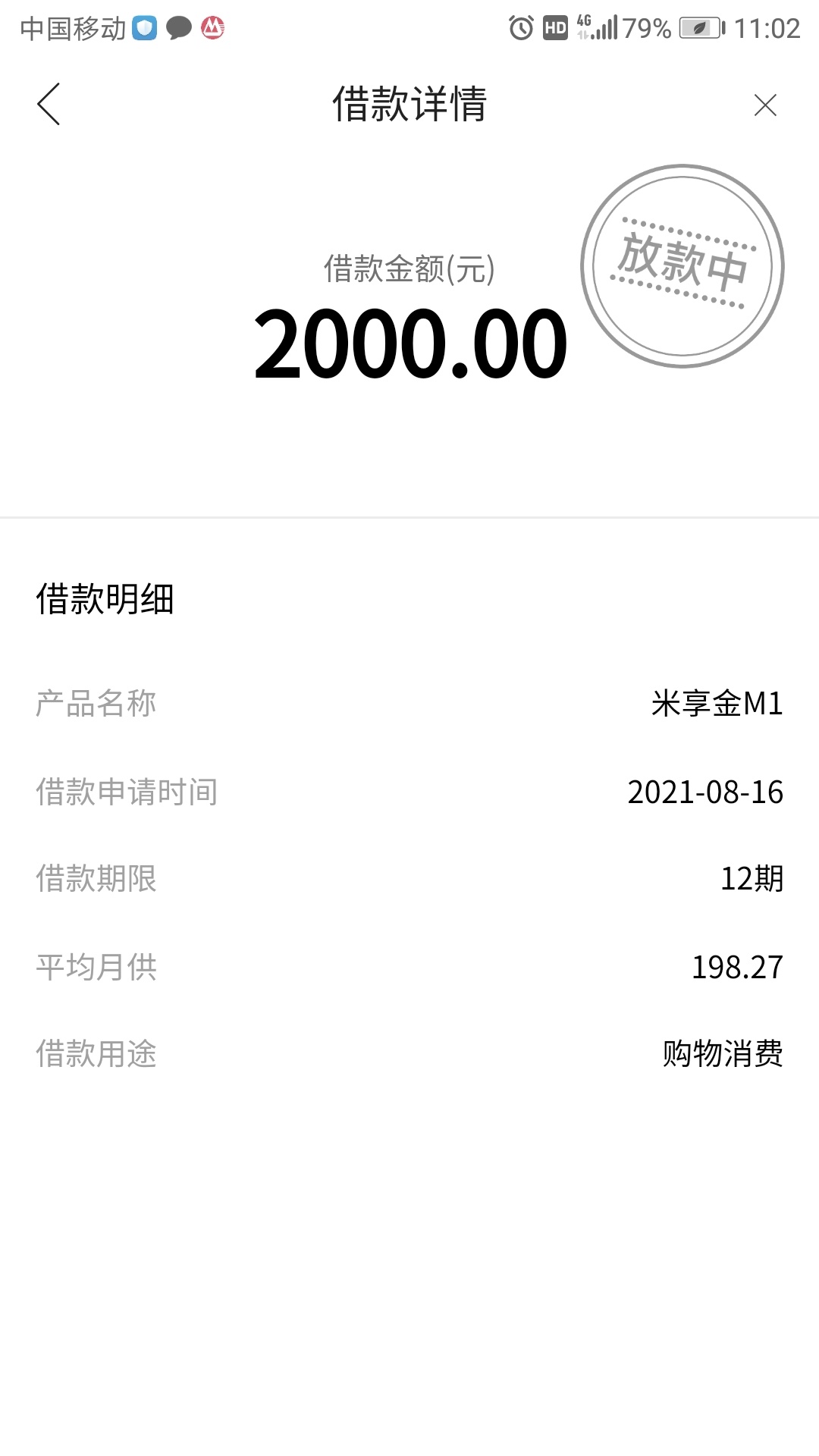 召集令米享金过了!不知道到不到账!本人资质信用报告逾期!本来都放弃了!2个月没有点今天过了!