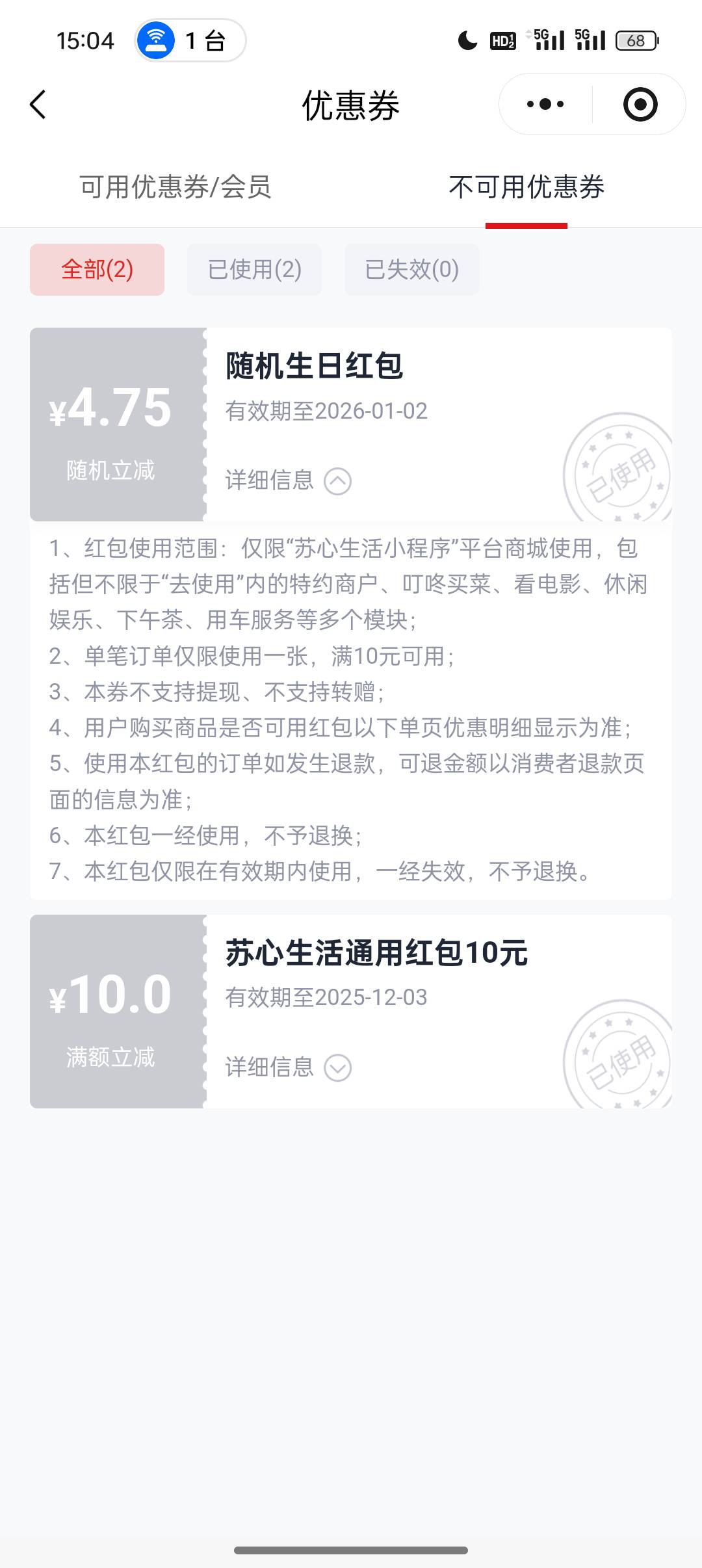 螃海钳子 发表于 2025-11-03 14:04 一张优惠10还有一张优惠5吗