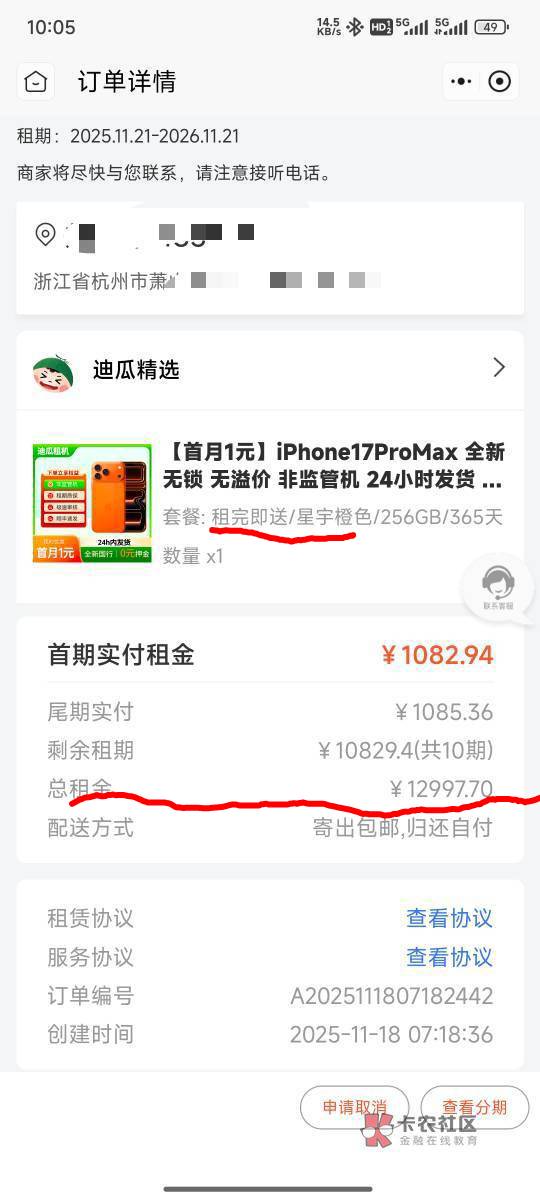 懒懒懒懒聊聊 发表于 2025-11-18 14:24 有没有可能那是租金,到期手机要归还或者交买断费的?