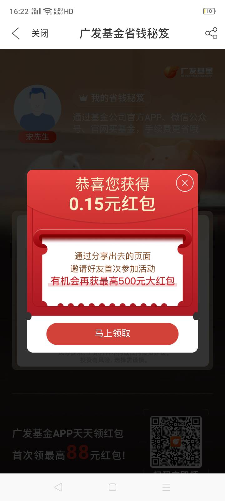 广发基金开启app消息通知每月抽红包活动