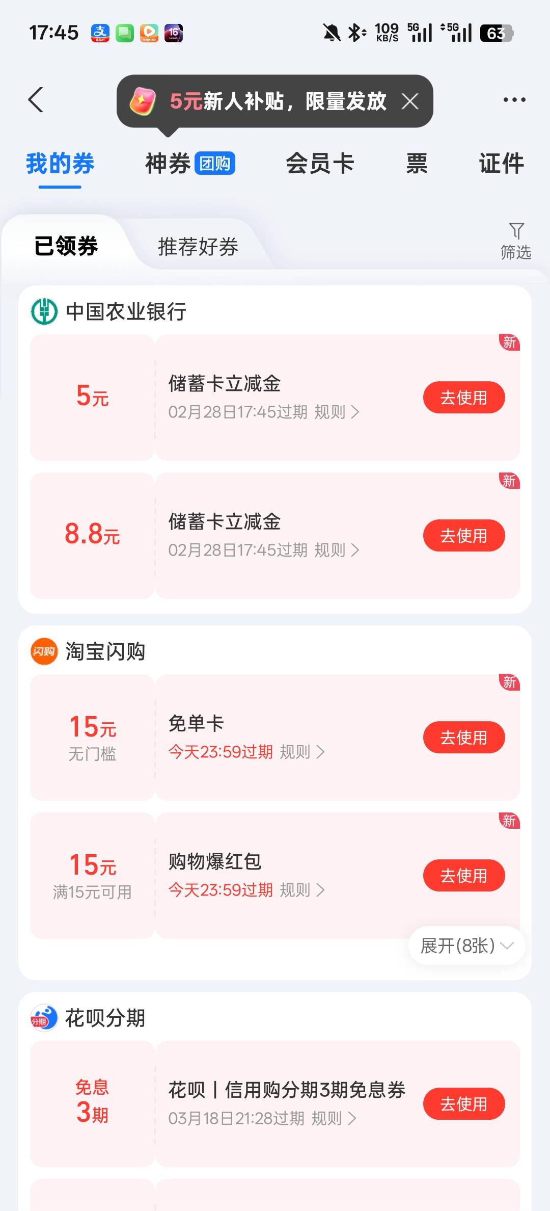 支付宝农行温州5+8.8,台州5+8.8,杭州西湖5+5+8.8