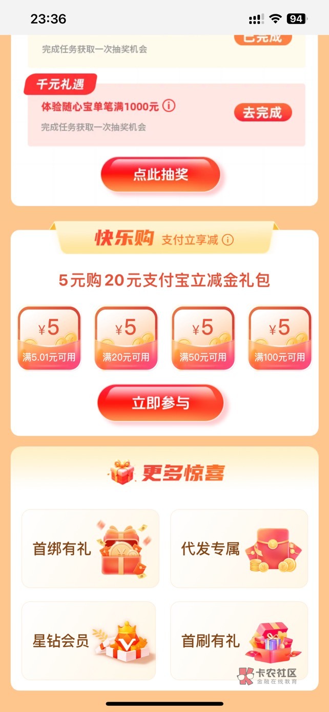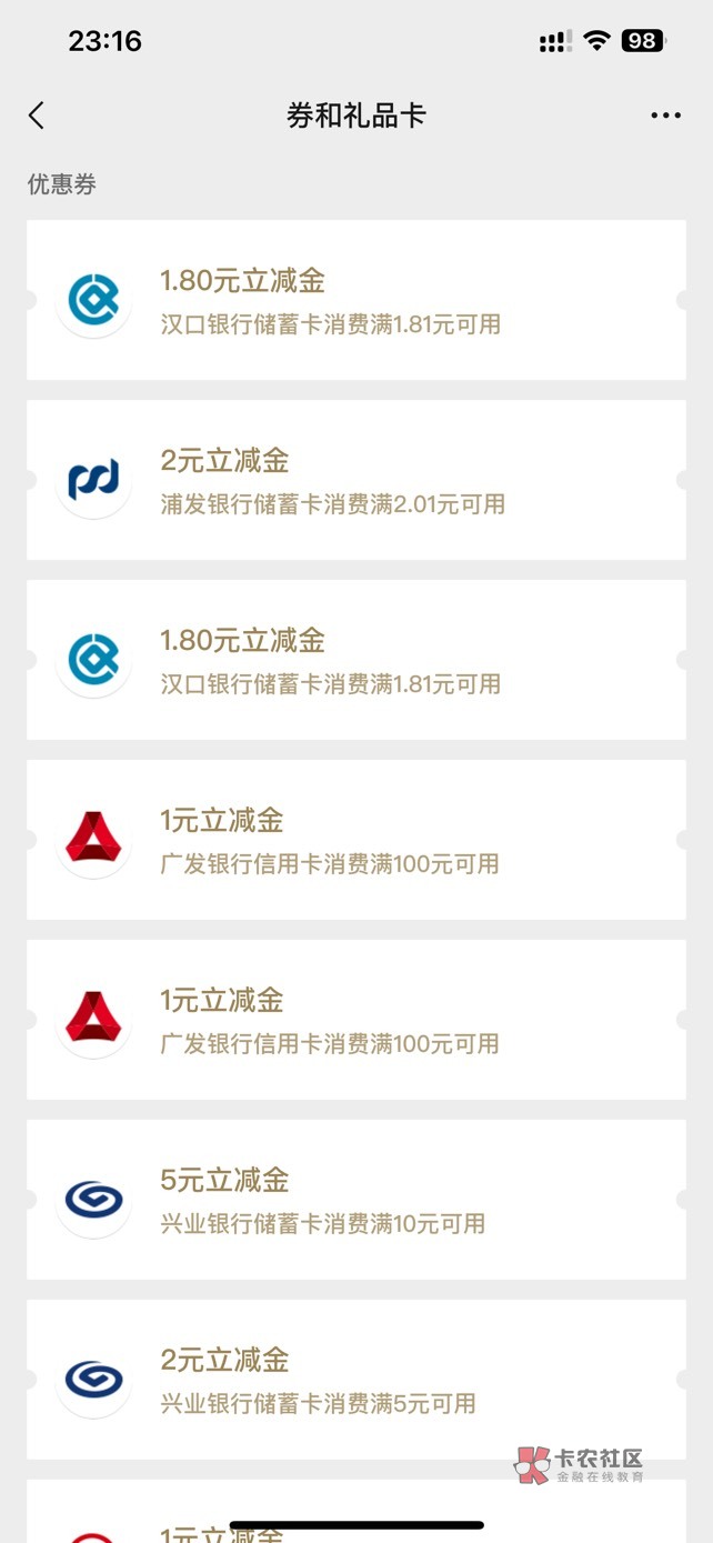 没羊毛发个冷门毛吧。汉口银行最低1.8最高50E卡,打卡1 4 7 天都能抽奖。我刚中两个低保。