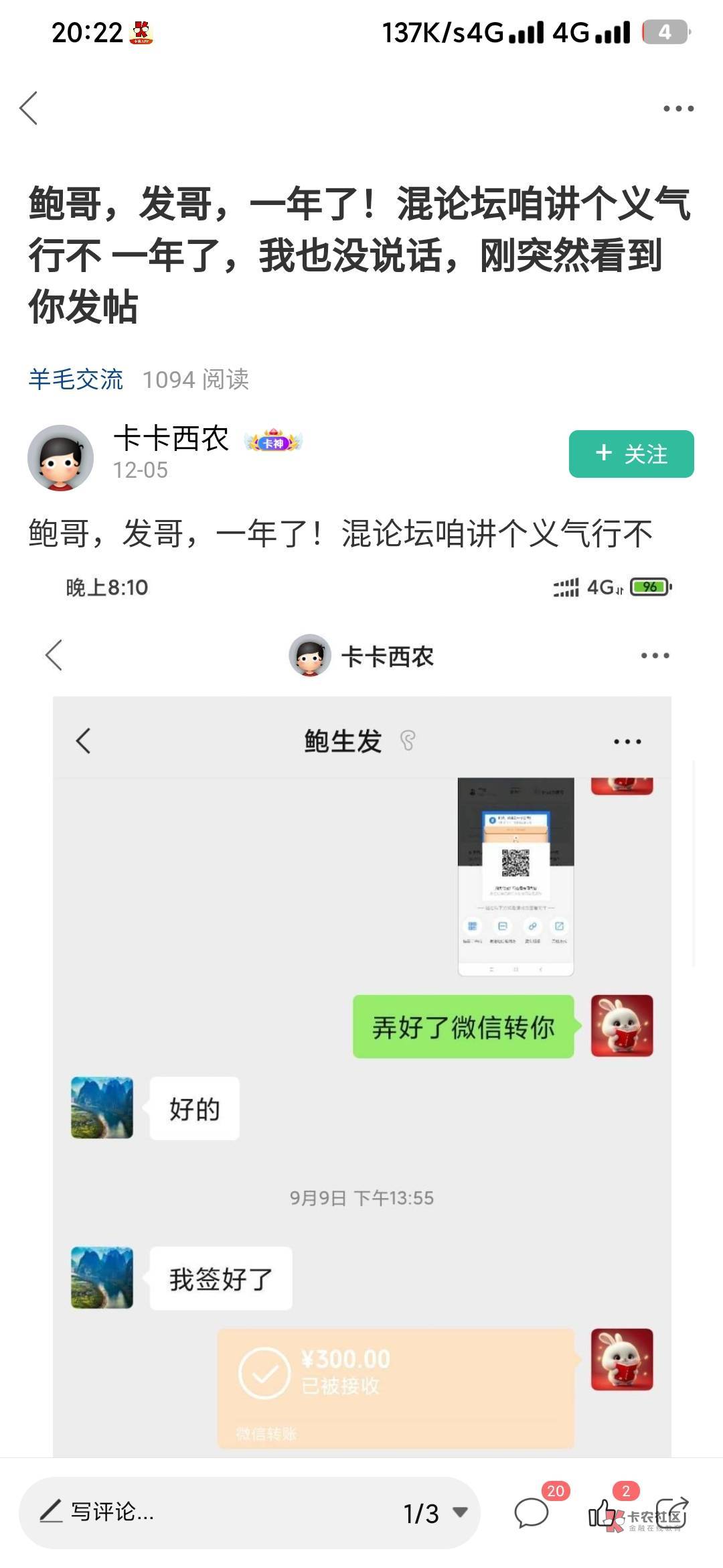 鲍生发 这个人去年找我打条借300,一直没还,还有钱堵,还发帖说给女儿生活费,她知道有你这种不会做人的爹吗?第一次还按时还了,第二次到现在都没还,还在卡农叫这叫那,人无信不立,迟早遭报应,而且不止我一个人被骗,还有老哥被骗,他打了借条的老哥们@卡卡西农 ,我们抱团一下,组个群,一个金额小,但我知道还有好几个被他骗的老哥,金额加起来直接报警抓他